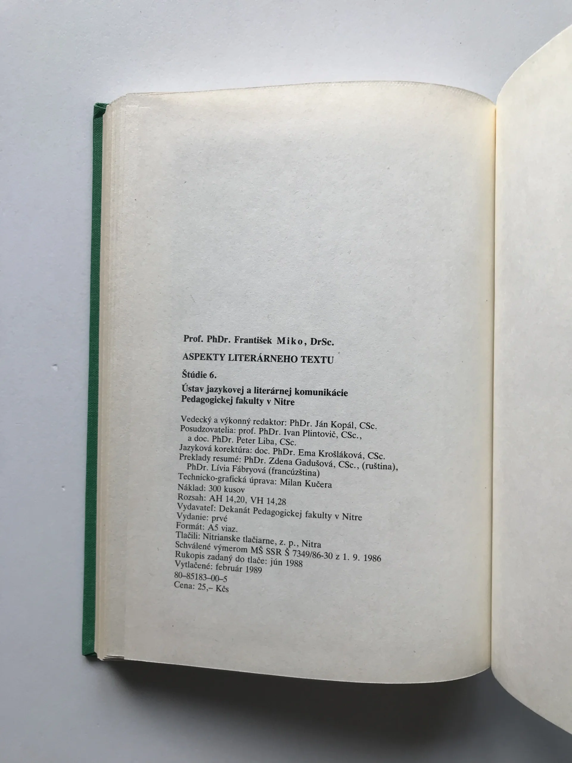 Aspekty literárneho textu, František Miko