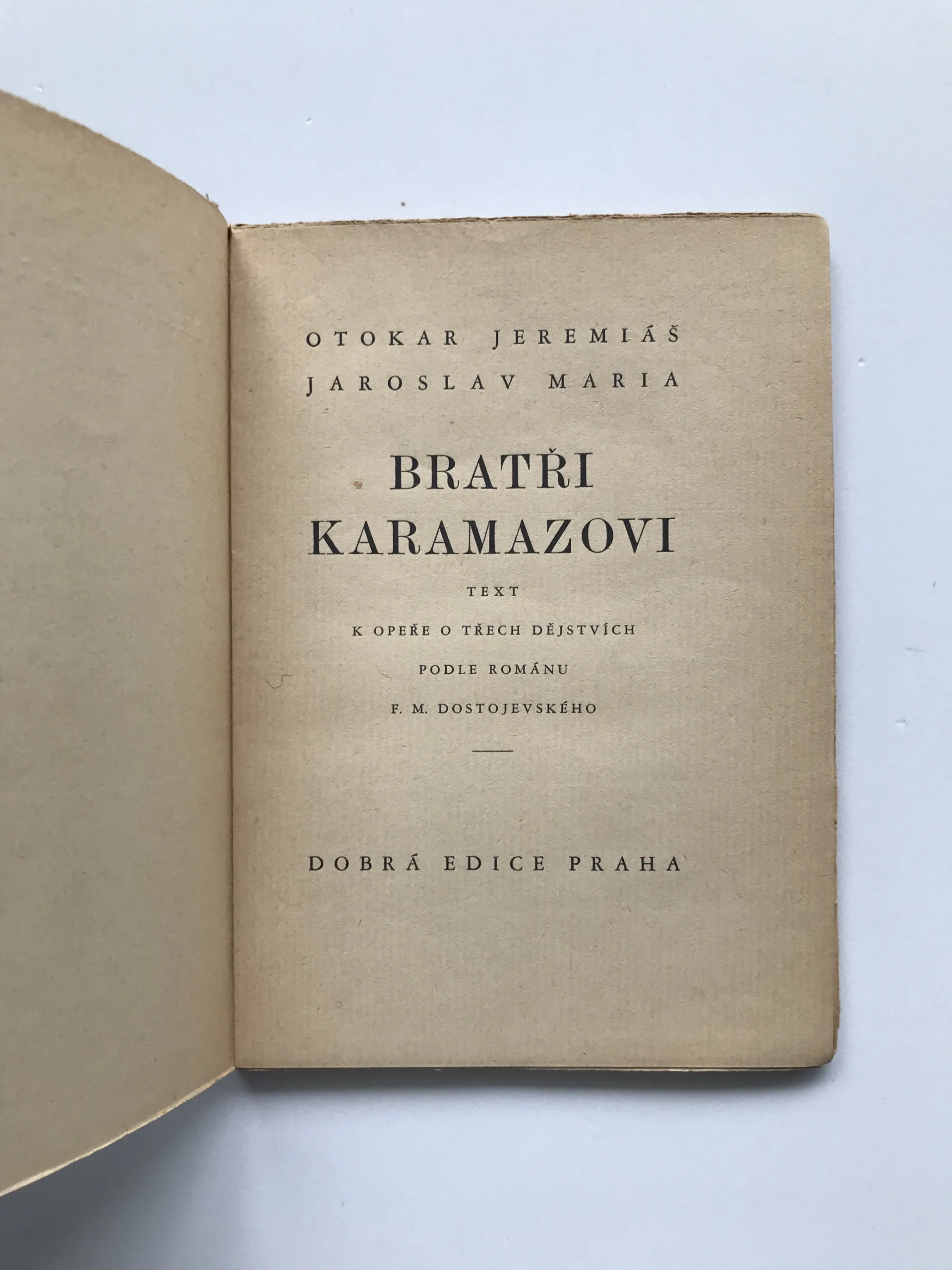 Bratři Karamazovi (Text k opeře o třech dějstvích podle románu F. M. Dostojevského), Otokar Jeremiáš, Jaroslav Maria