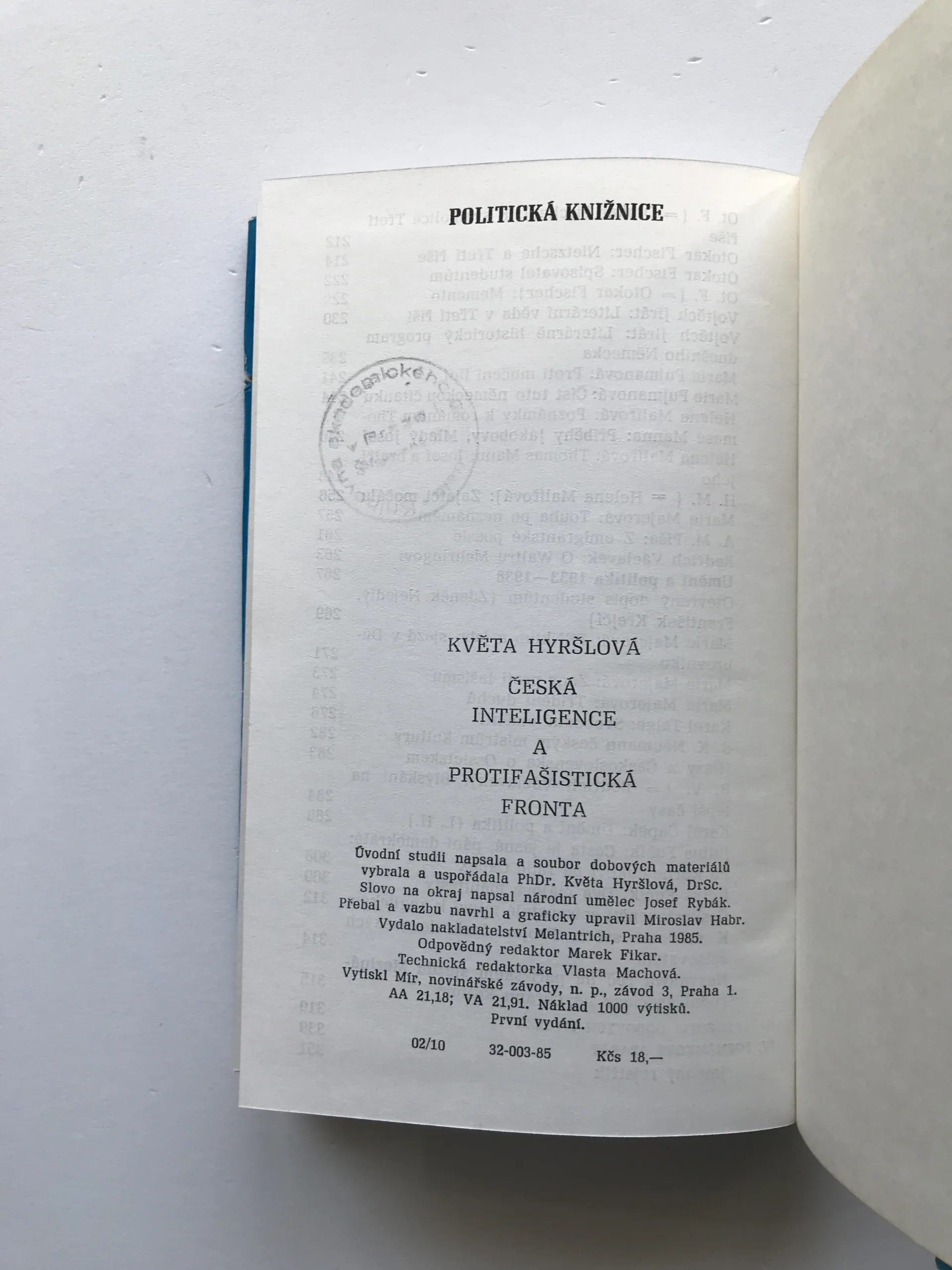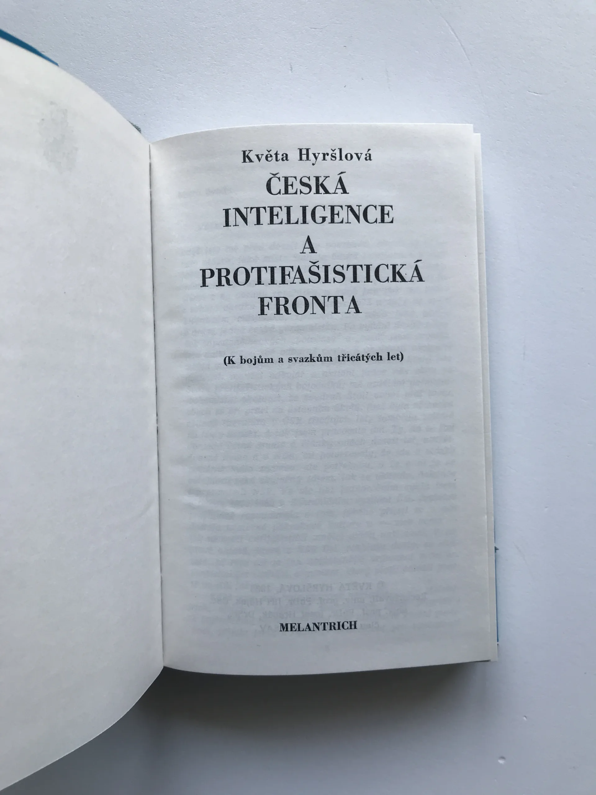 Česká inteligence a protifašistická fronta (K bojům a svazkům třicátých let), Květa Hyršlová