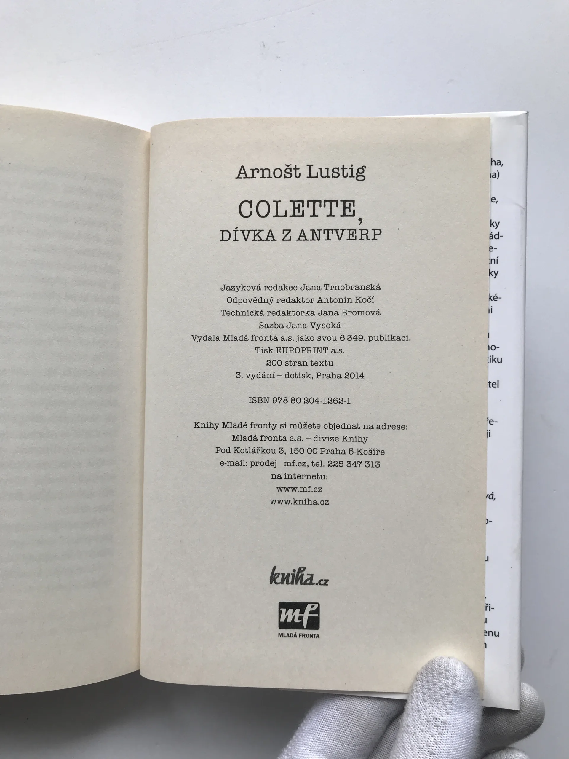 Colette – Dívka z Antverp, Arnošt Lustig