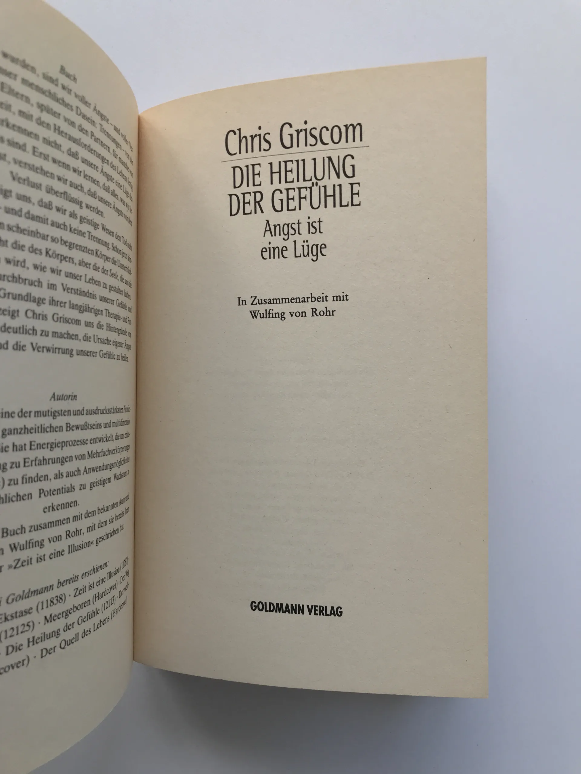 Die Heilung der Gefühle (Angst ist eine Lüge), Chris Griscom