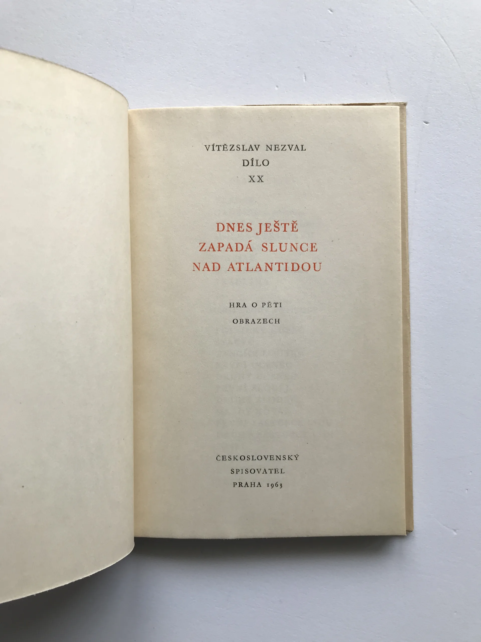 Dnes ještě zapadá slunce nad Atlantidou (Dílo XX), Vítězslav Nezval
