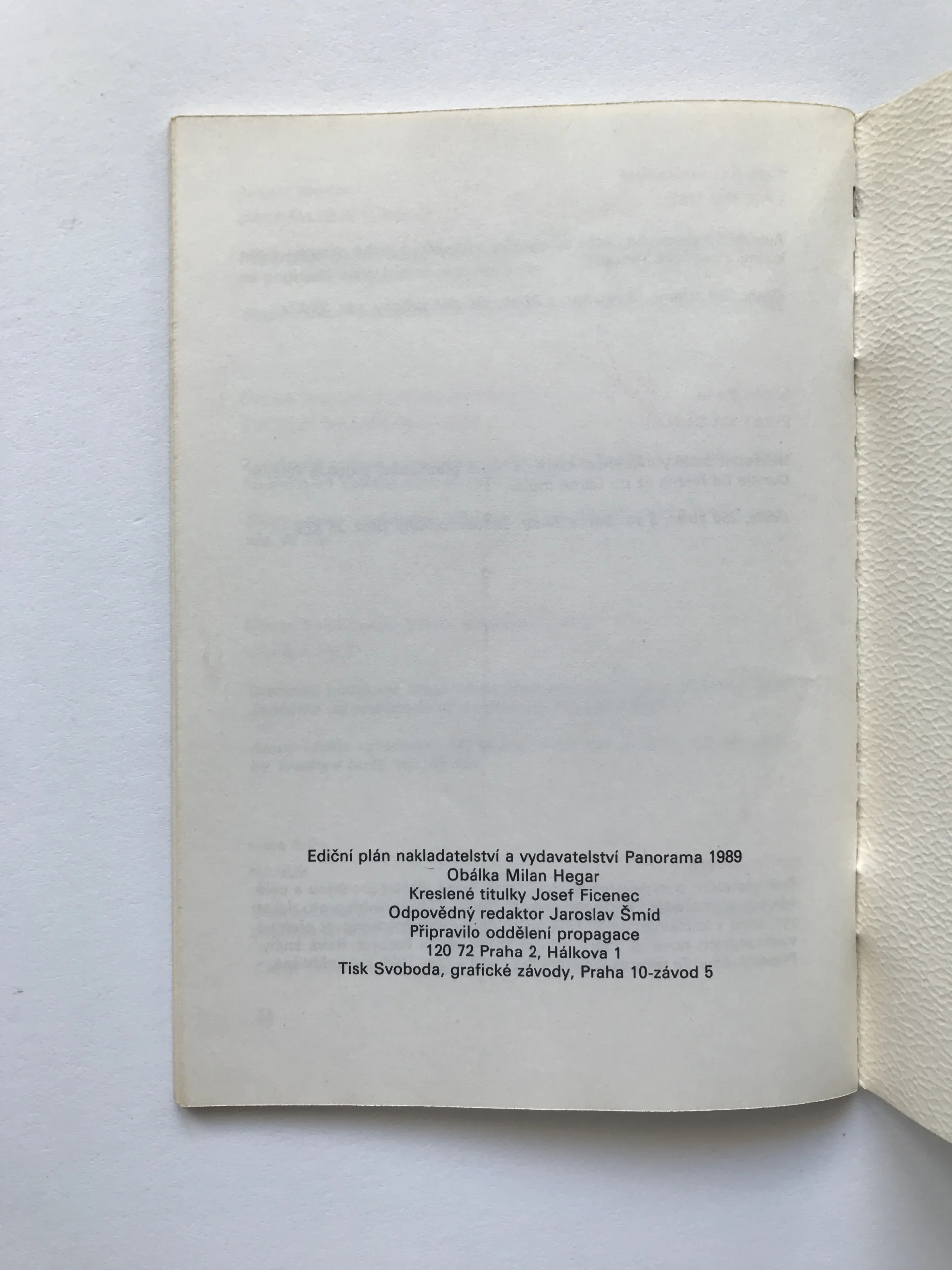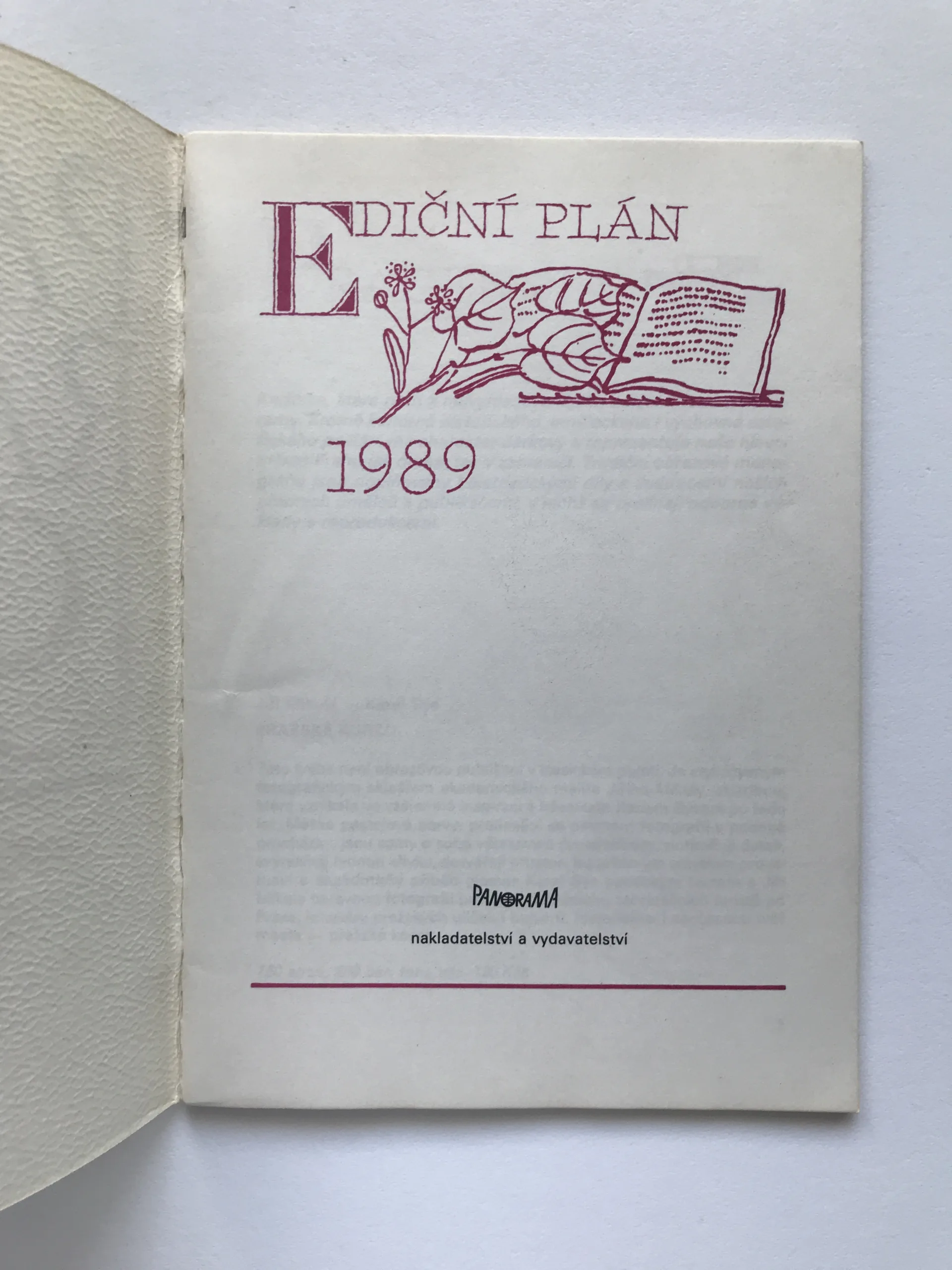 Ediční plán nakladatelství a vydavatelství Panorama 1989