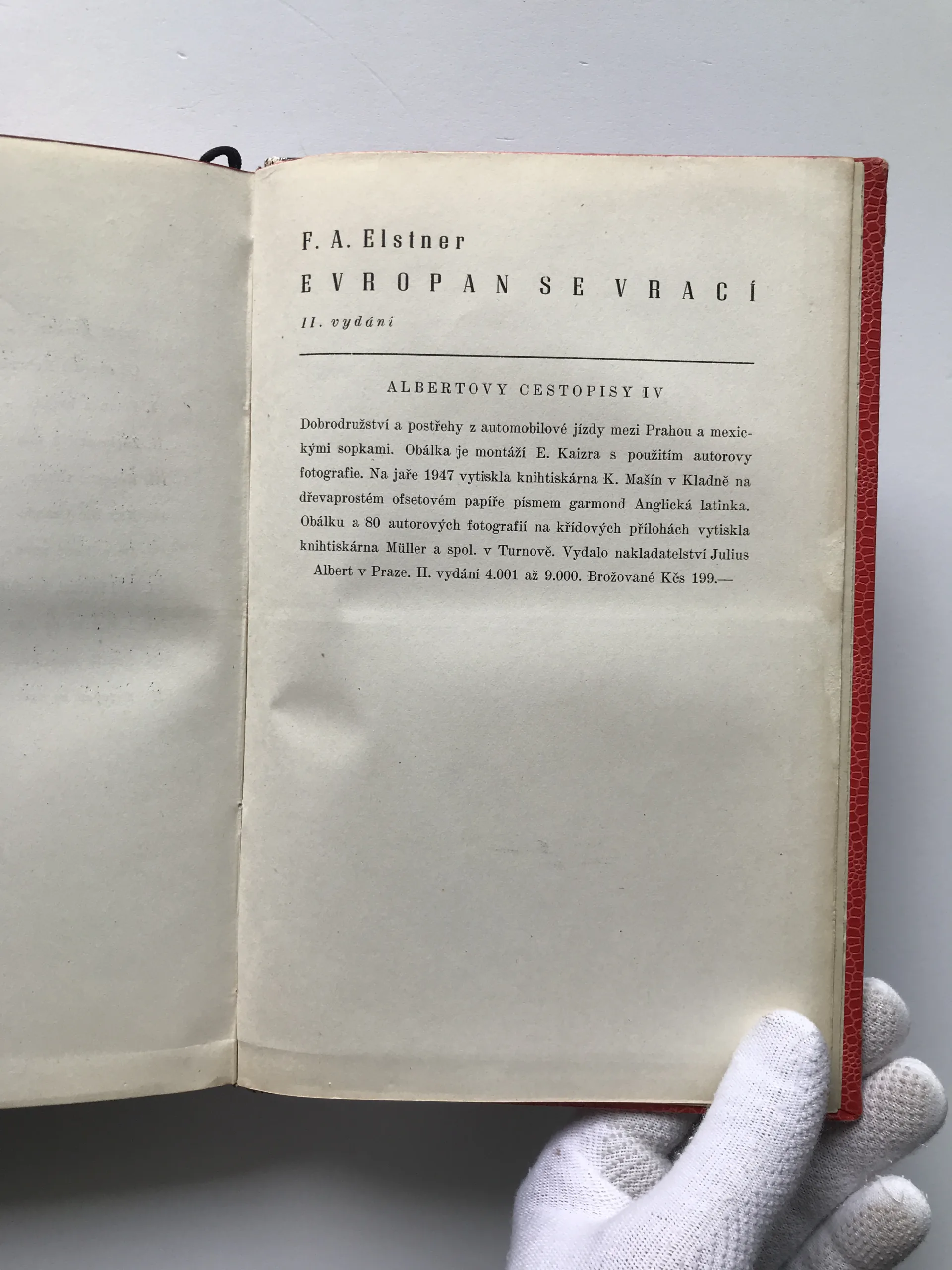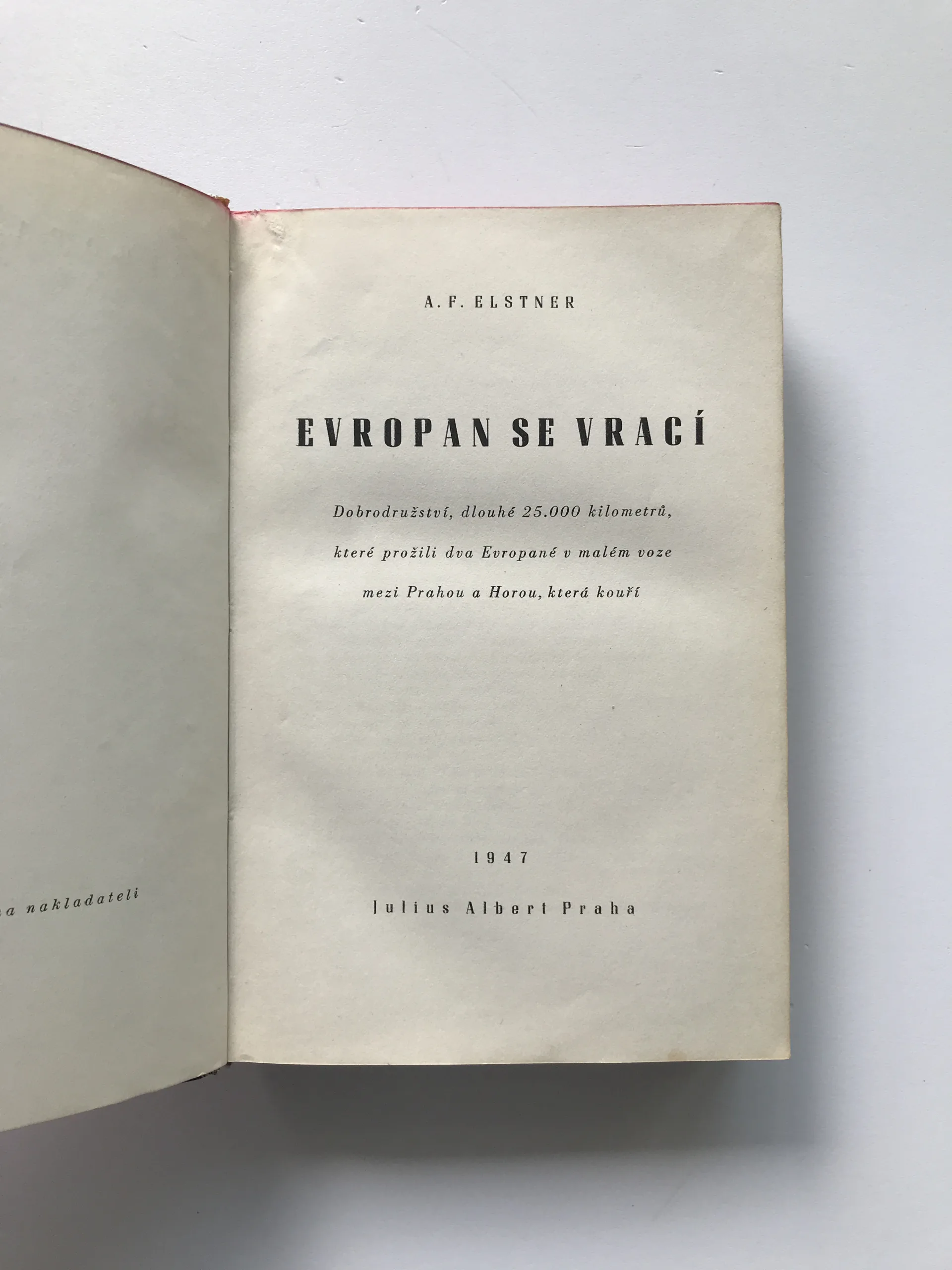Evropan se vrací (Dobrodružství dlouhé 25.000 kilometrů, které prožili dva Evropané v malém voze mezi Prahou a Horou, která kouří), František Alexander Elstner