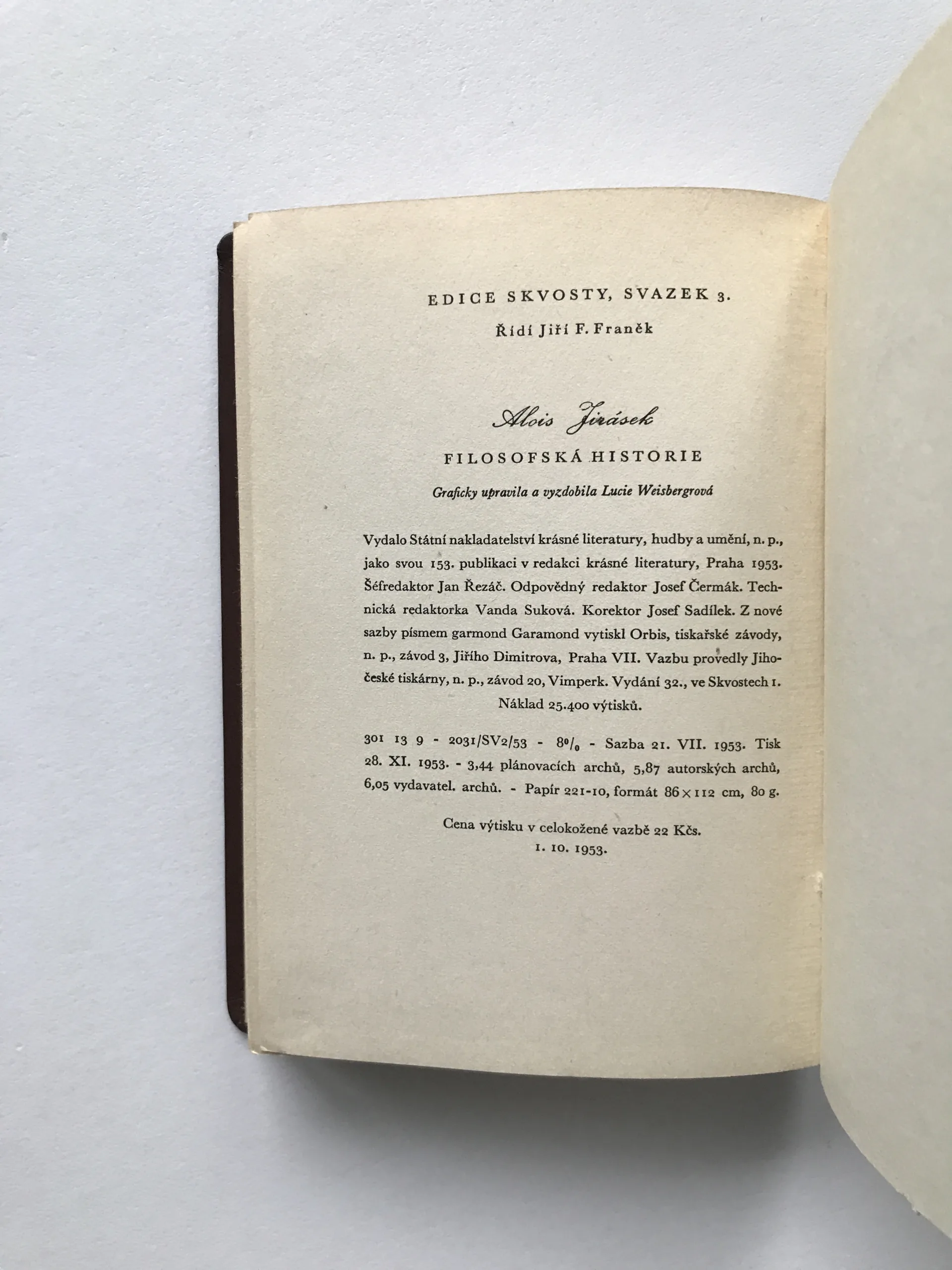 Filosofská historie, Alois Jirásek
