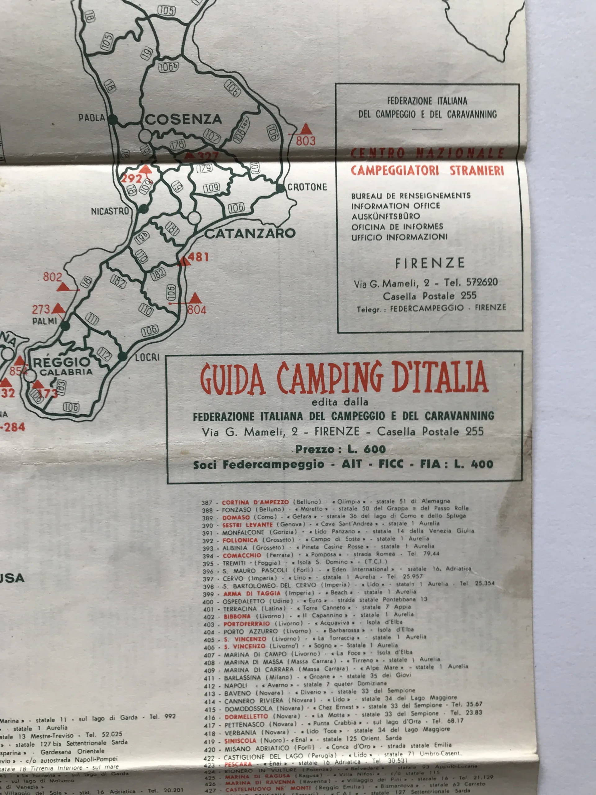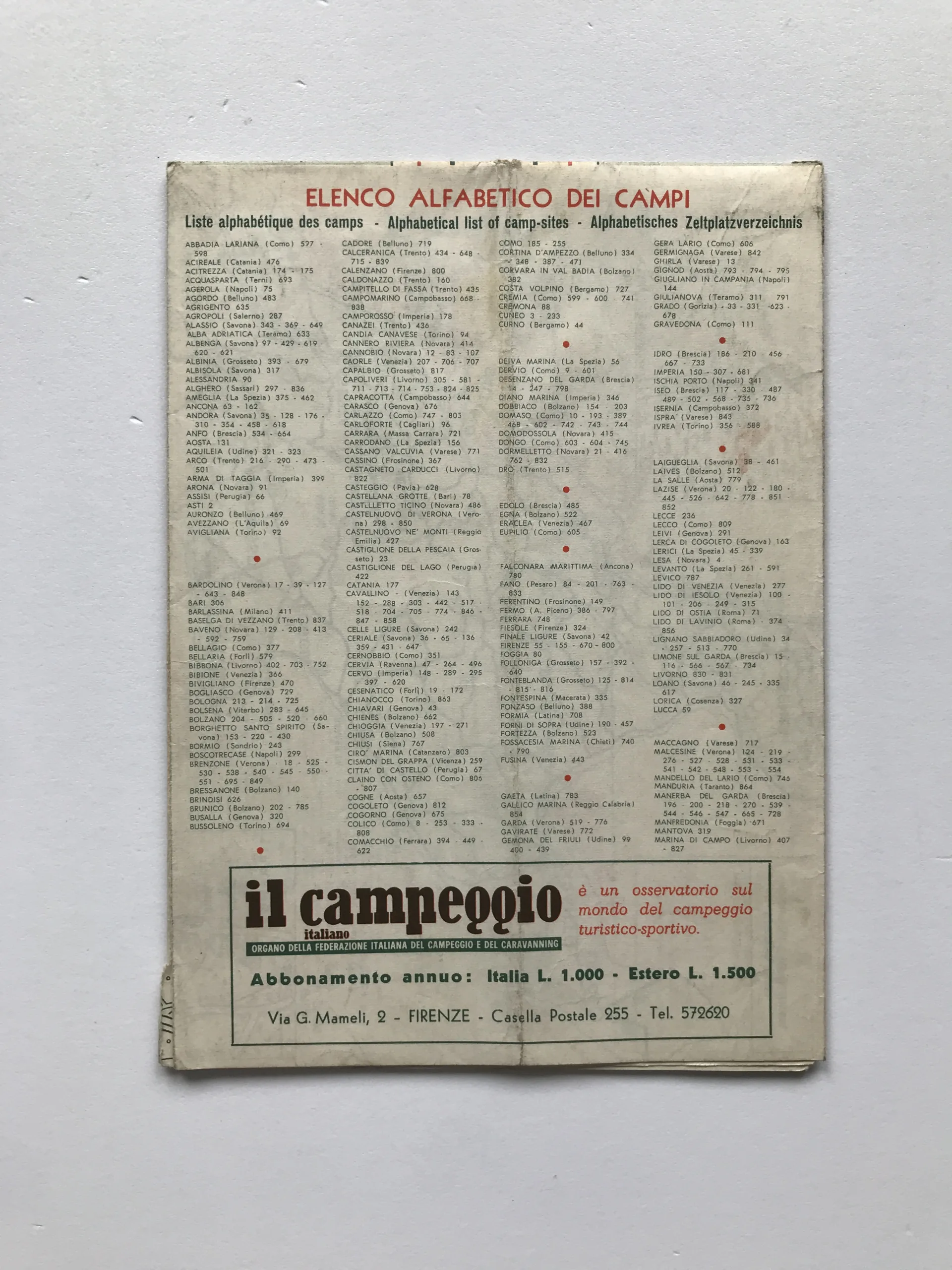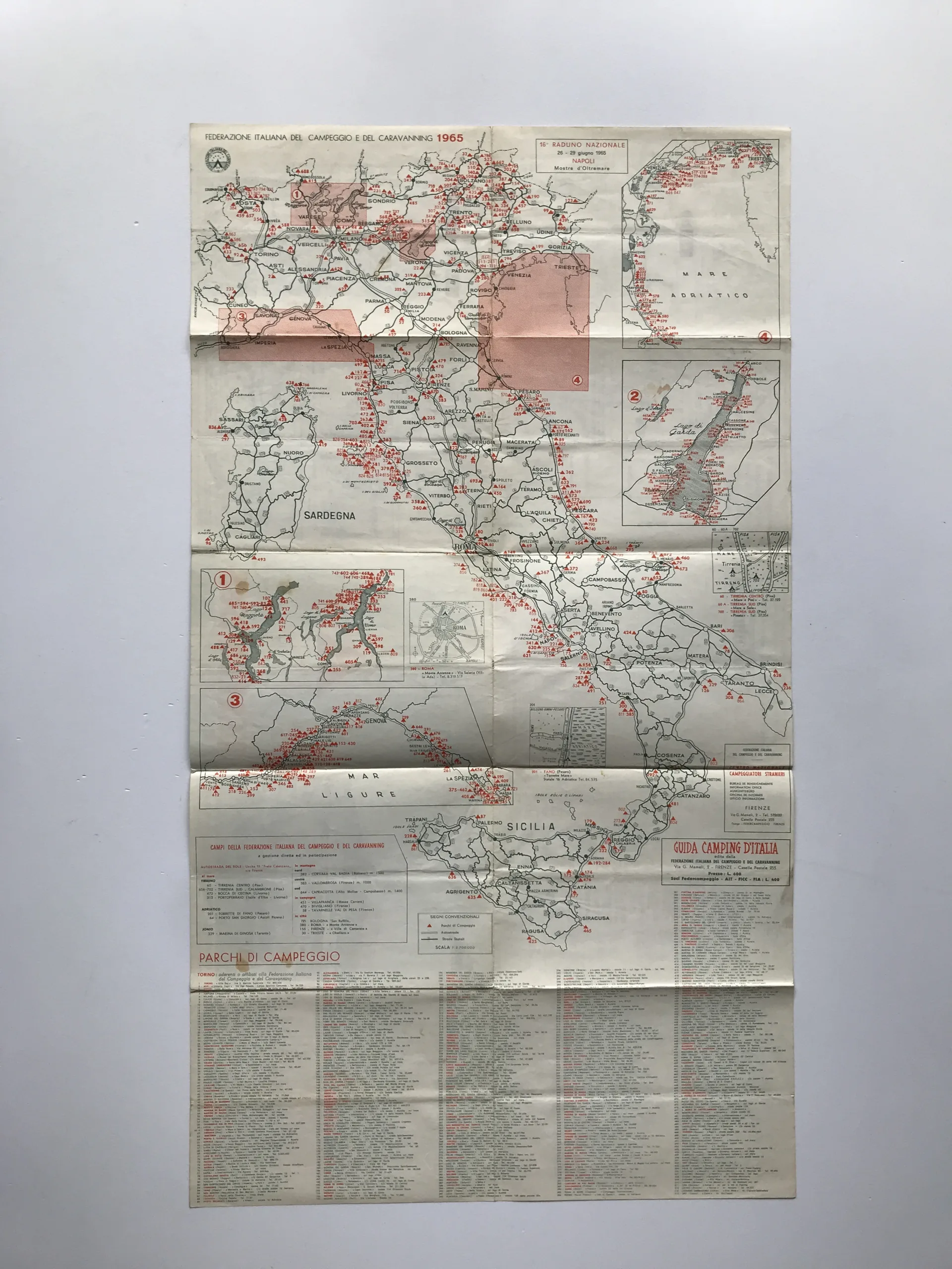 Italia 1965 (Carta schematica parchi di campeggio)