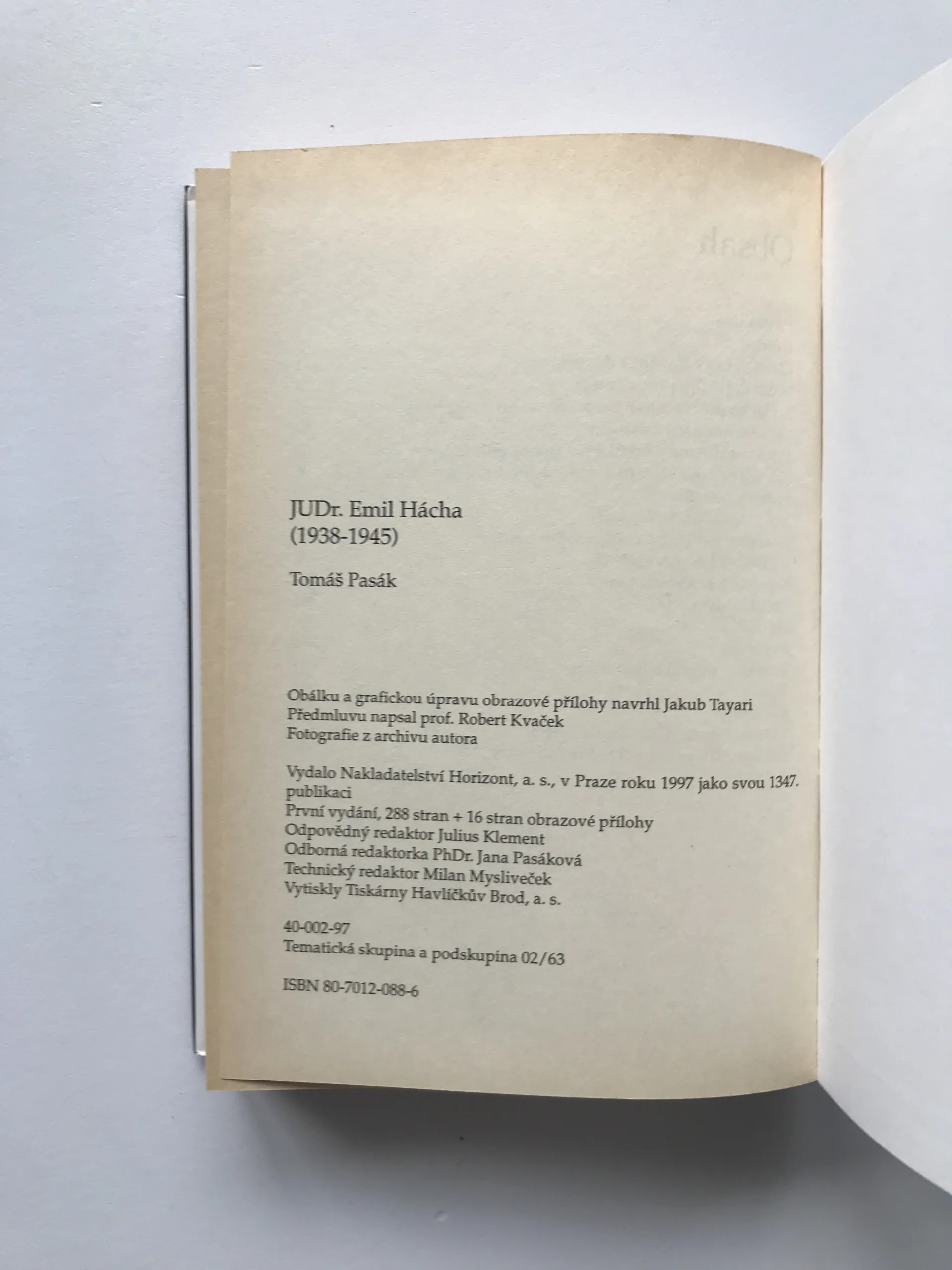 JUDr. Emil Hácha (1938-1945), Tomáš Pasák