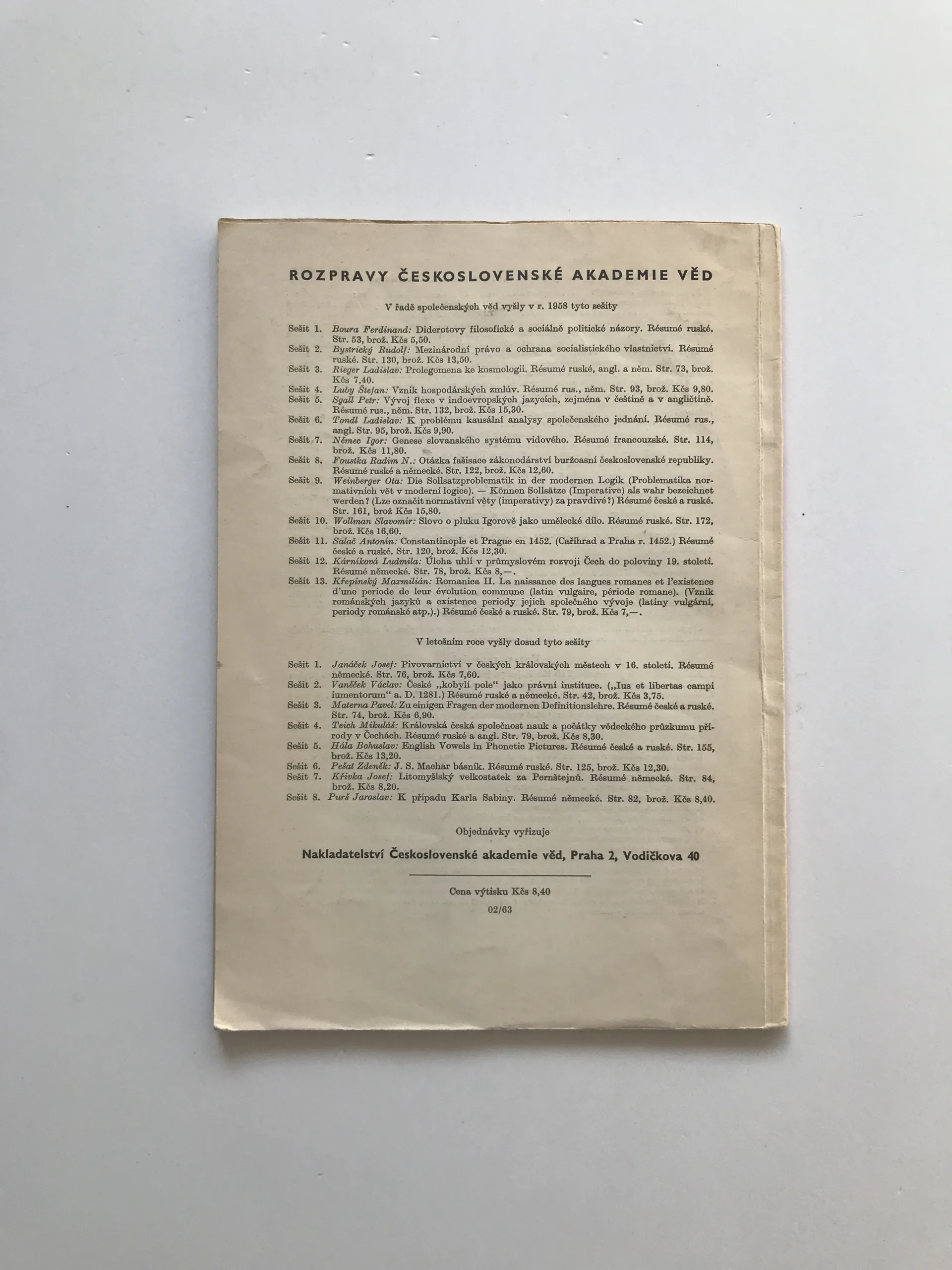 Nabízené knihy a další tiskoviny jsou antikvárního charakteru a nesou stopy předchozího používání. Aktuální stav je patrný z přiložených fotografií.