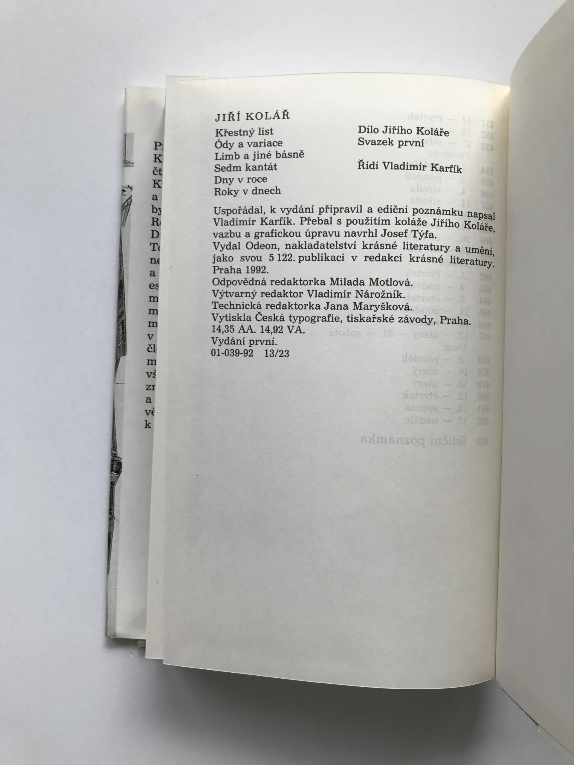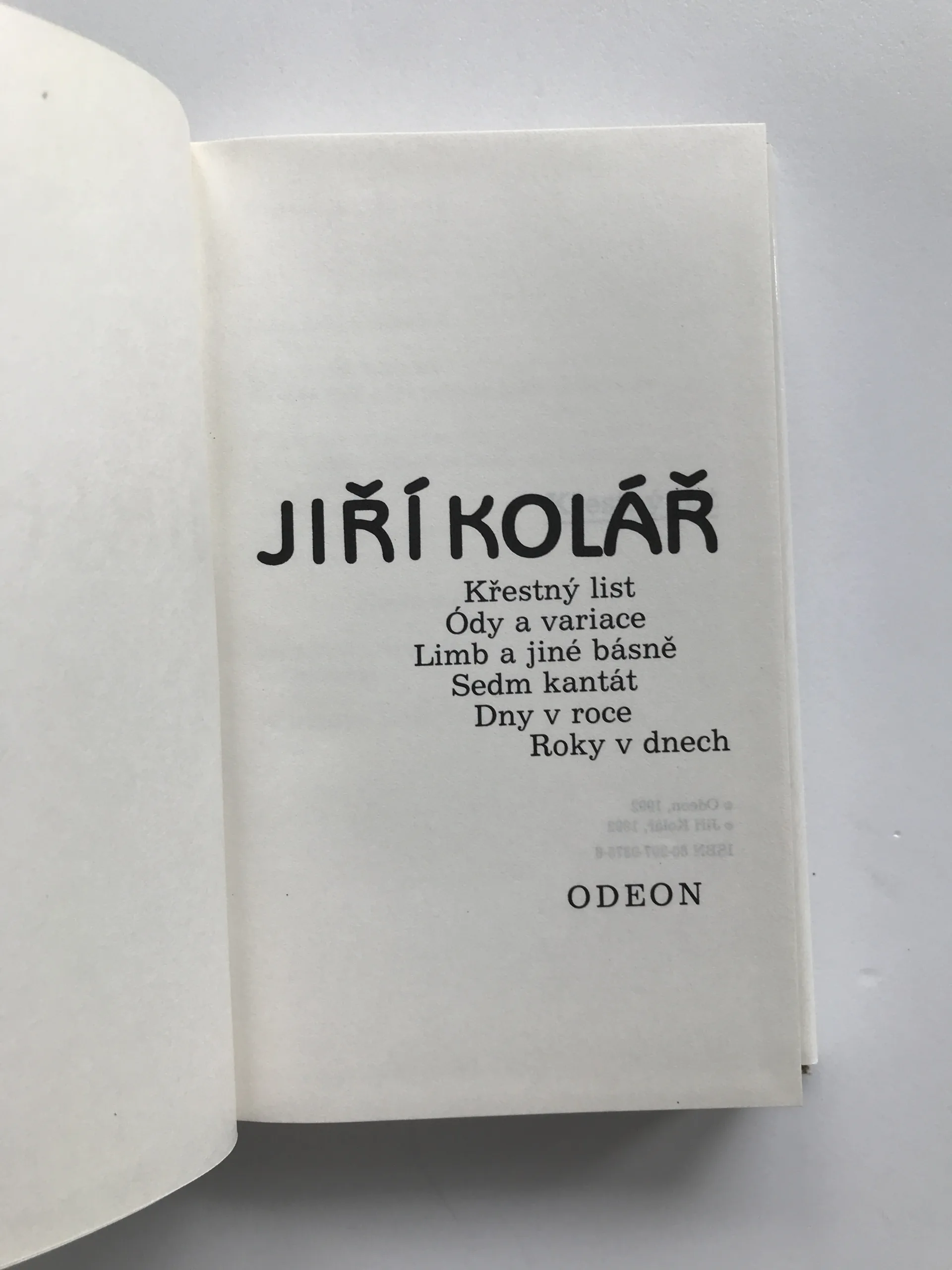 Křestný list / Ódy a variace / Limb a jiné básně / Sedm kantát / Dny v roce / Roky v dnech, Jiří Kolář