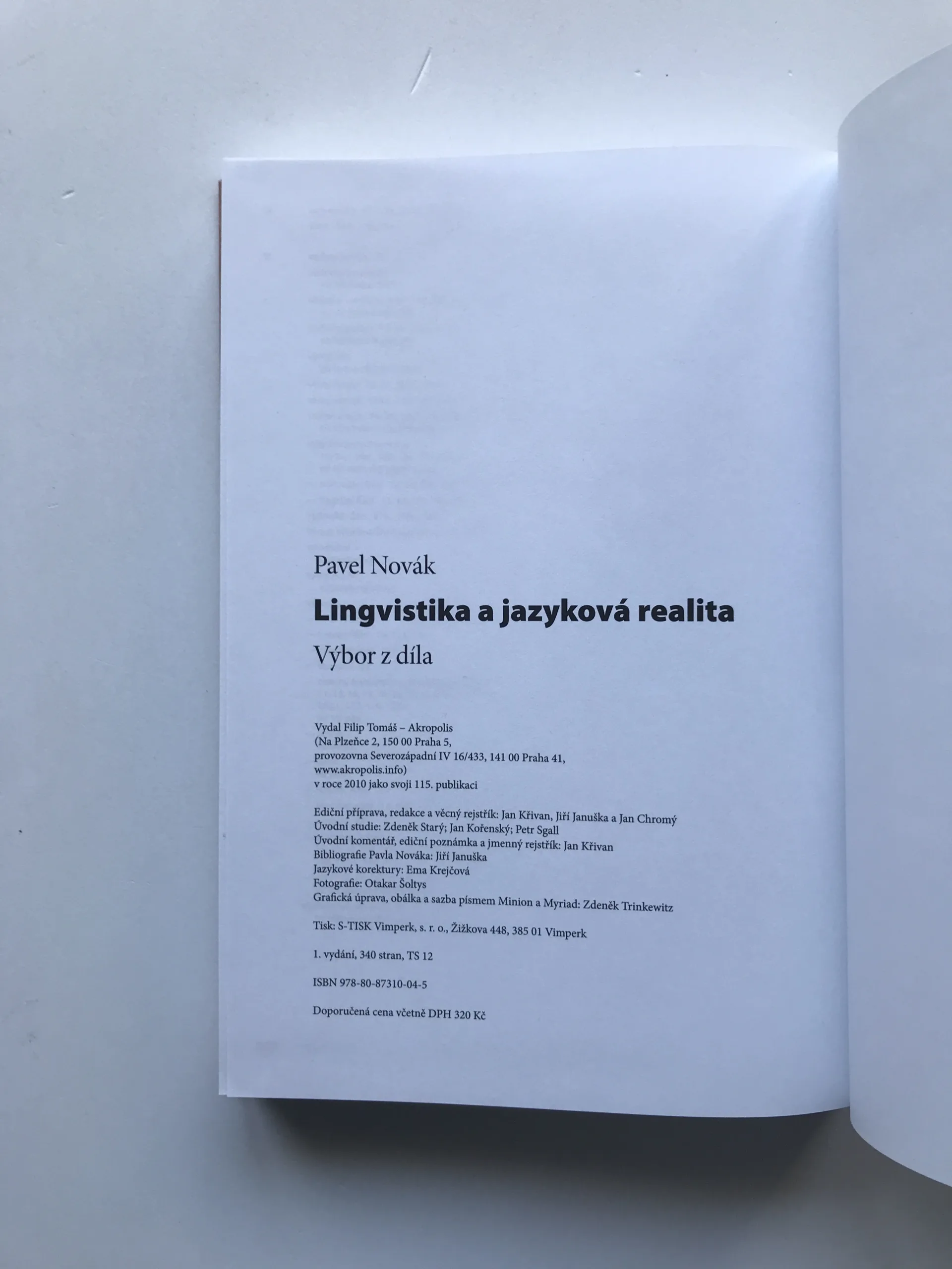 Lingvistika a jazyková realita (Výbor z díla), Pavel Novák