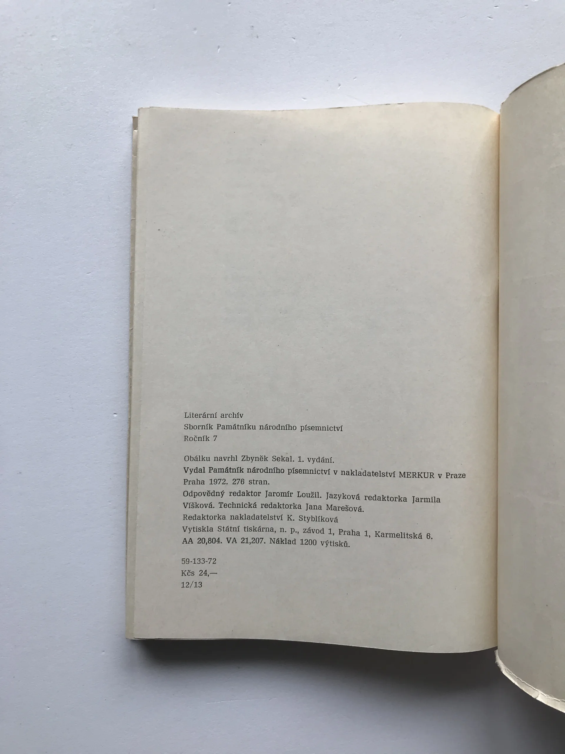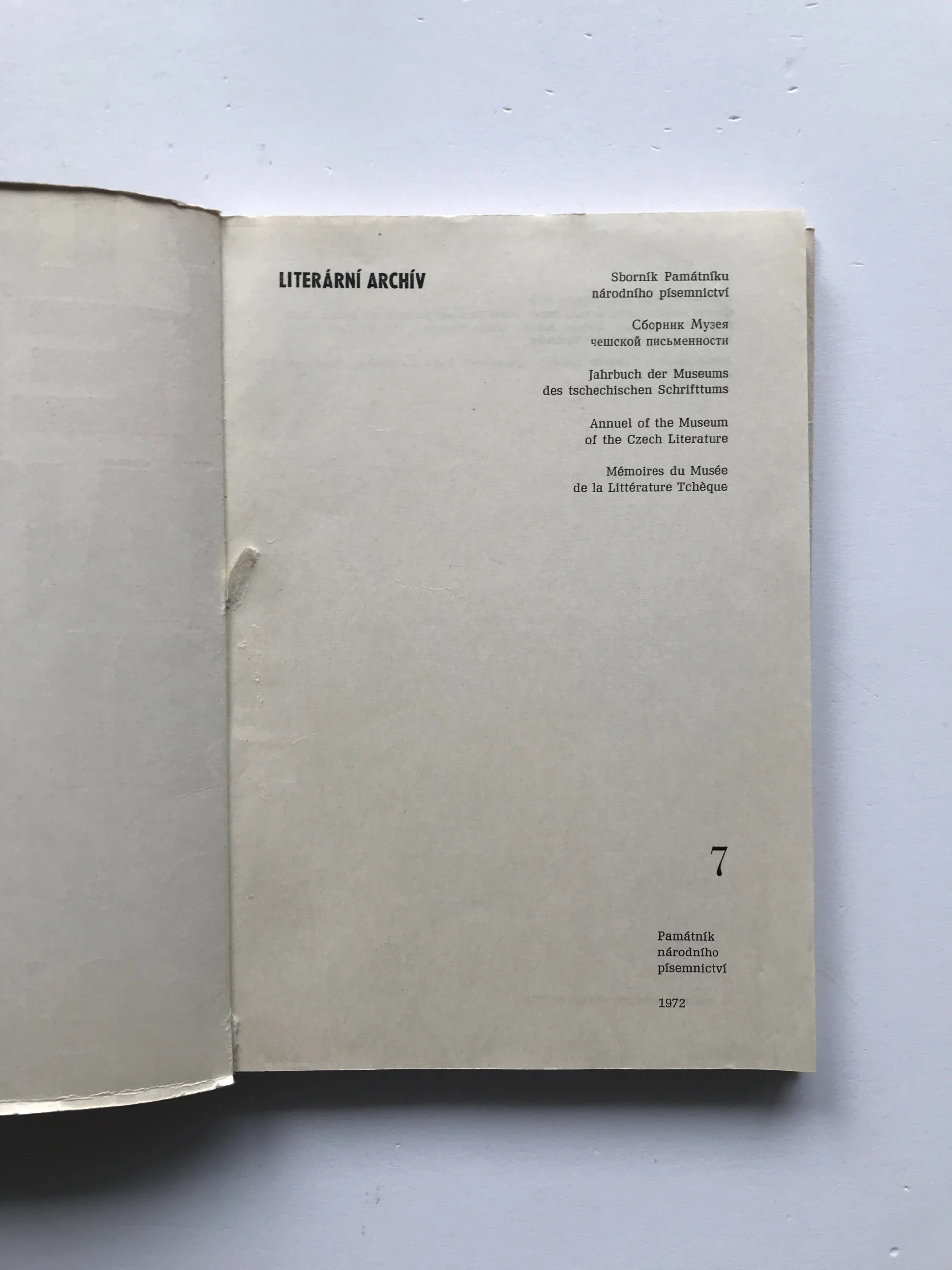 Literární archiv VII/72 (Sborník Památníku národního písemnictví)