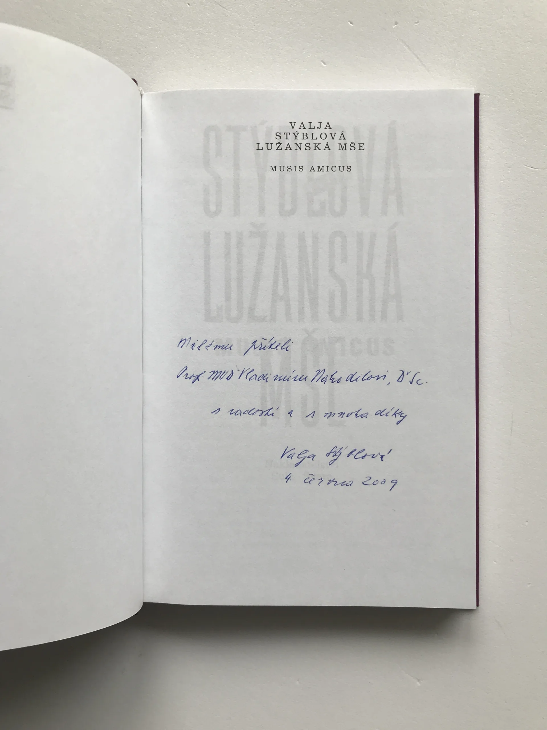Lužanská mše – Music amicus (podpis autorky), Valja Stýblová