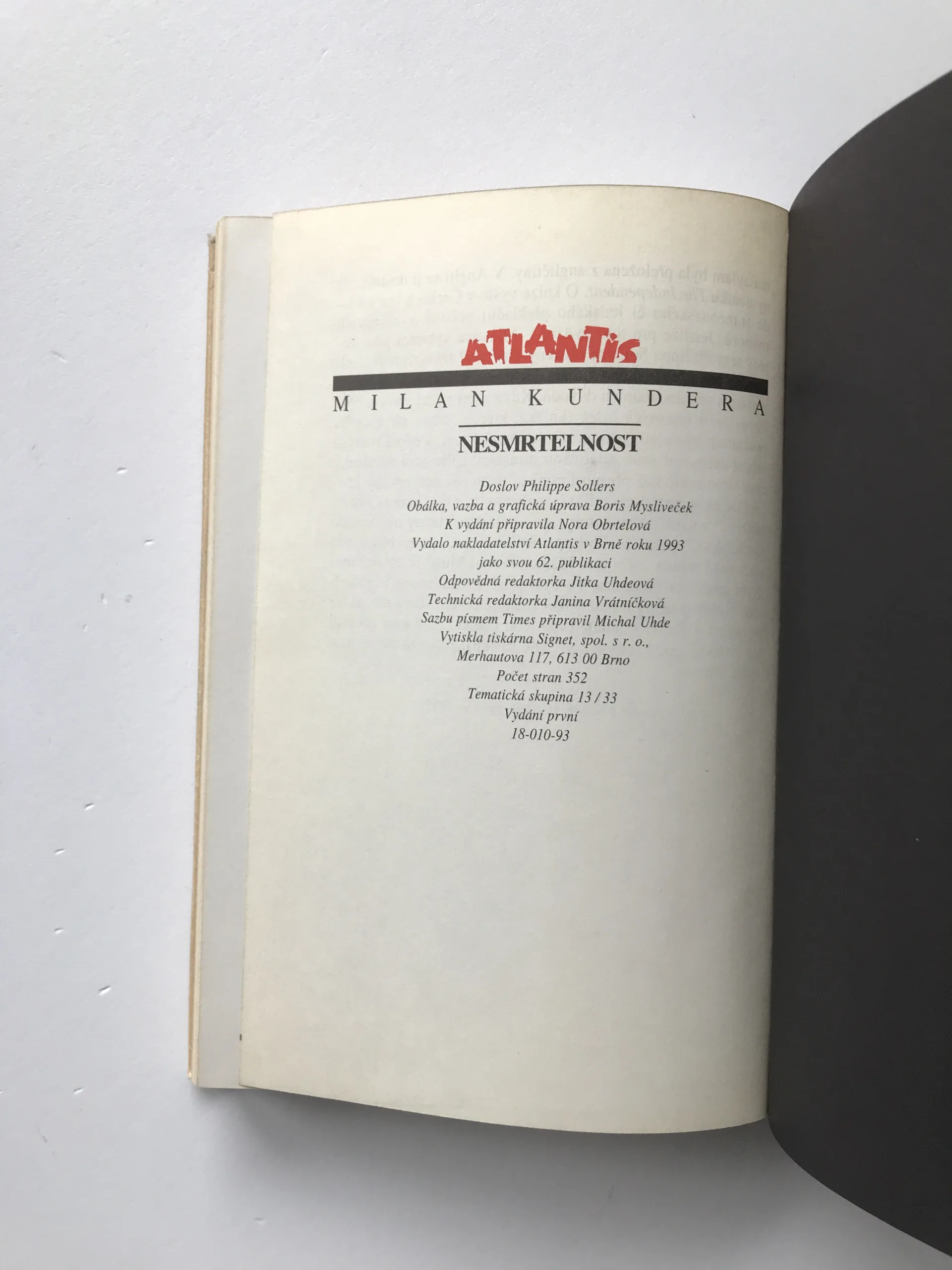 Nesmrtelnost, Milan Kundera