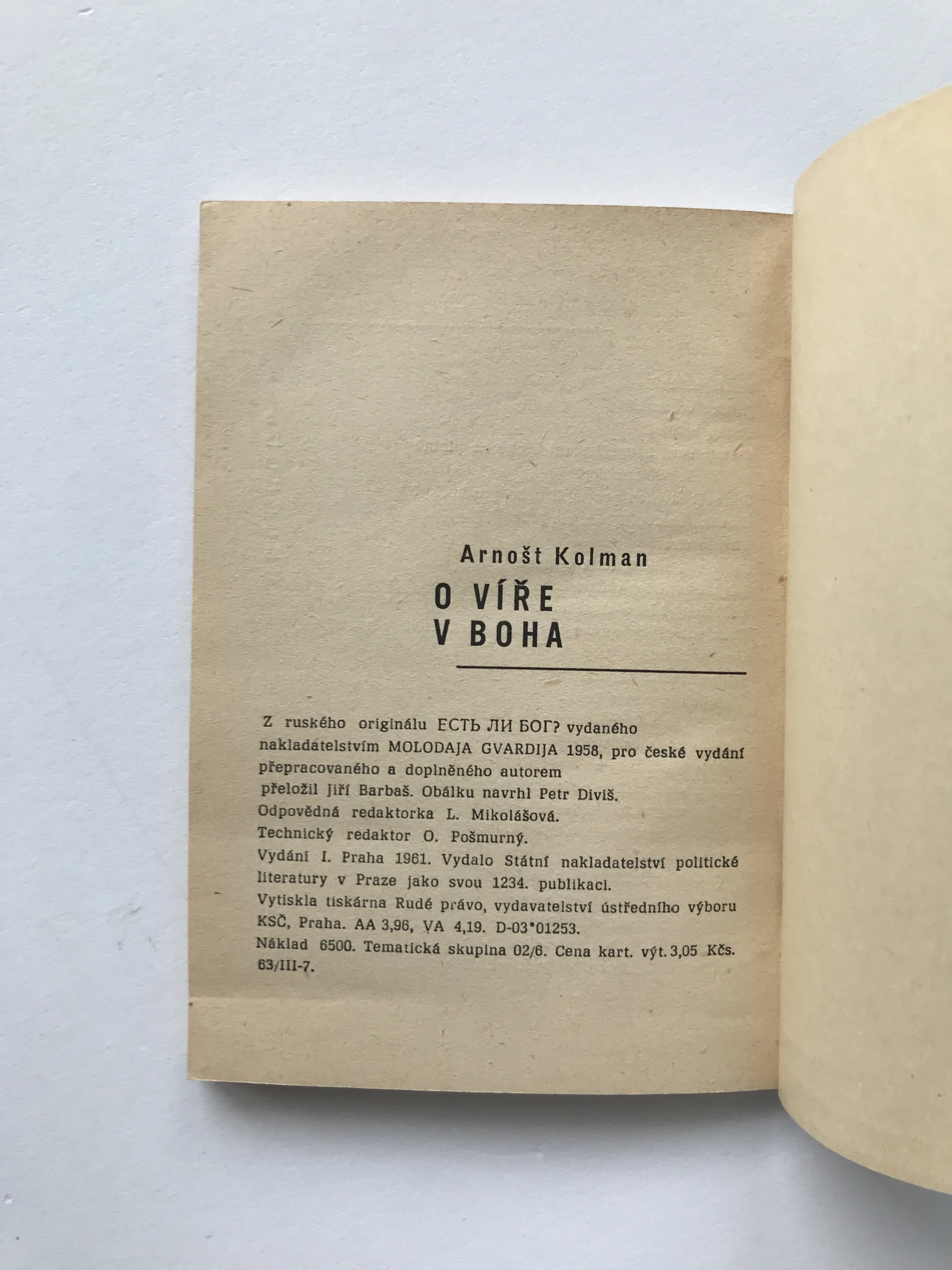 O víře v Boha, Arnošt Kolman