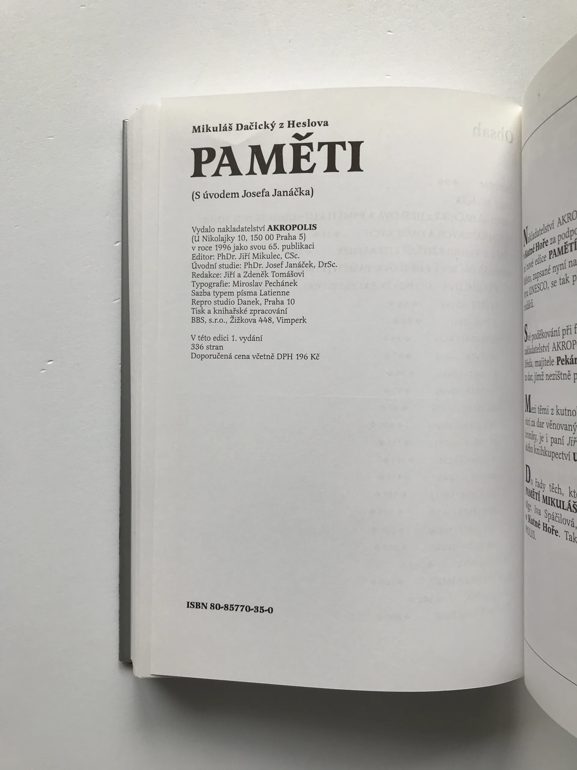 Paměti, Mikuláš Dačický z Heslova