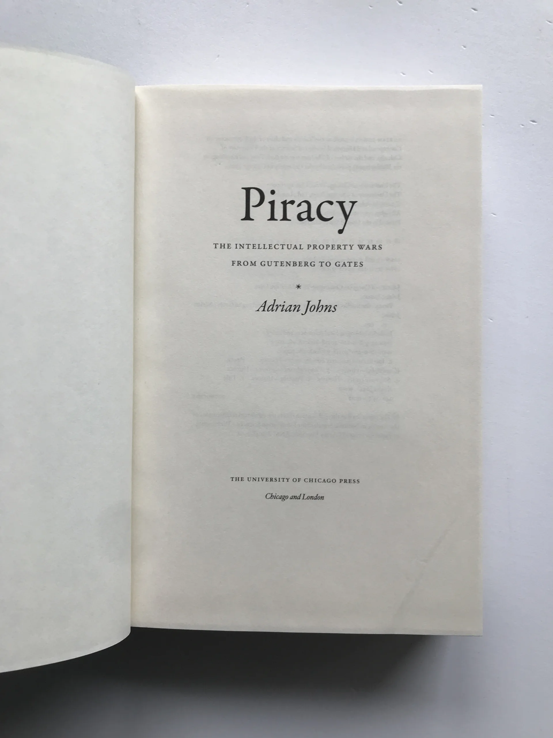 Piracy – The Intellectual Property Wars from Gutenberg to Gates, Adrian Johns