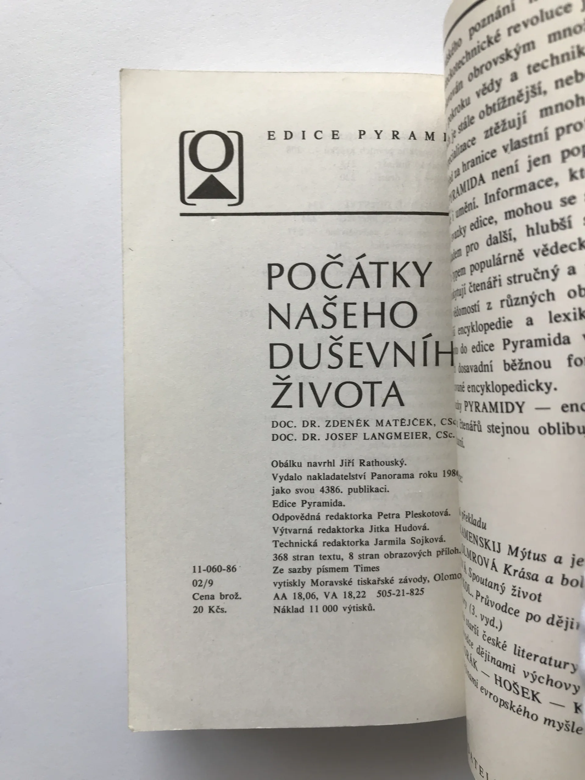 Počátky našeho duševního života, Zdeněk Matějček, Josef Langmeier