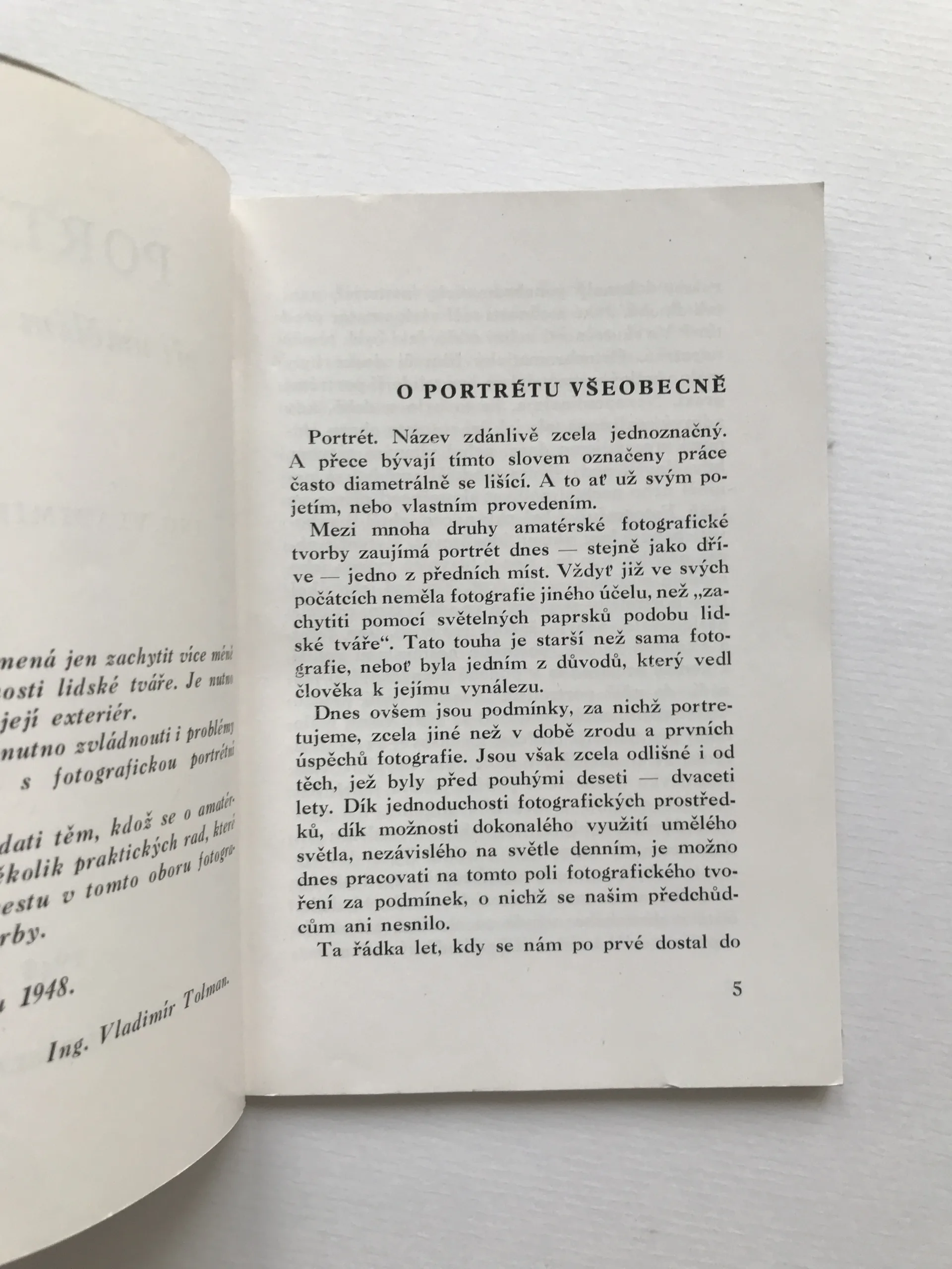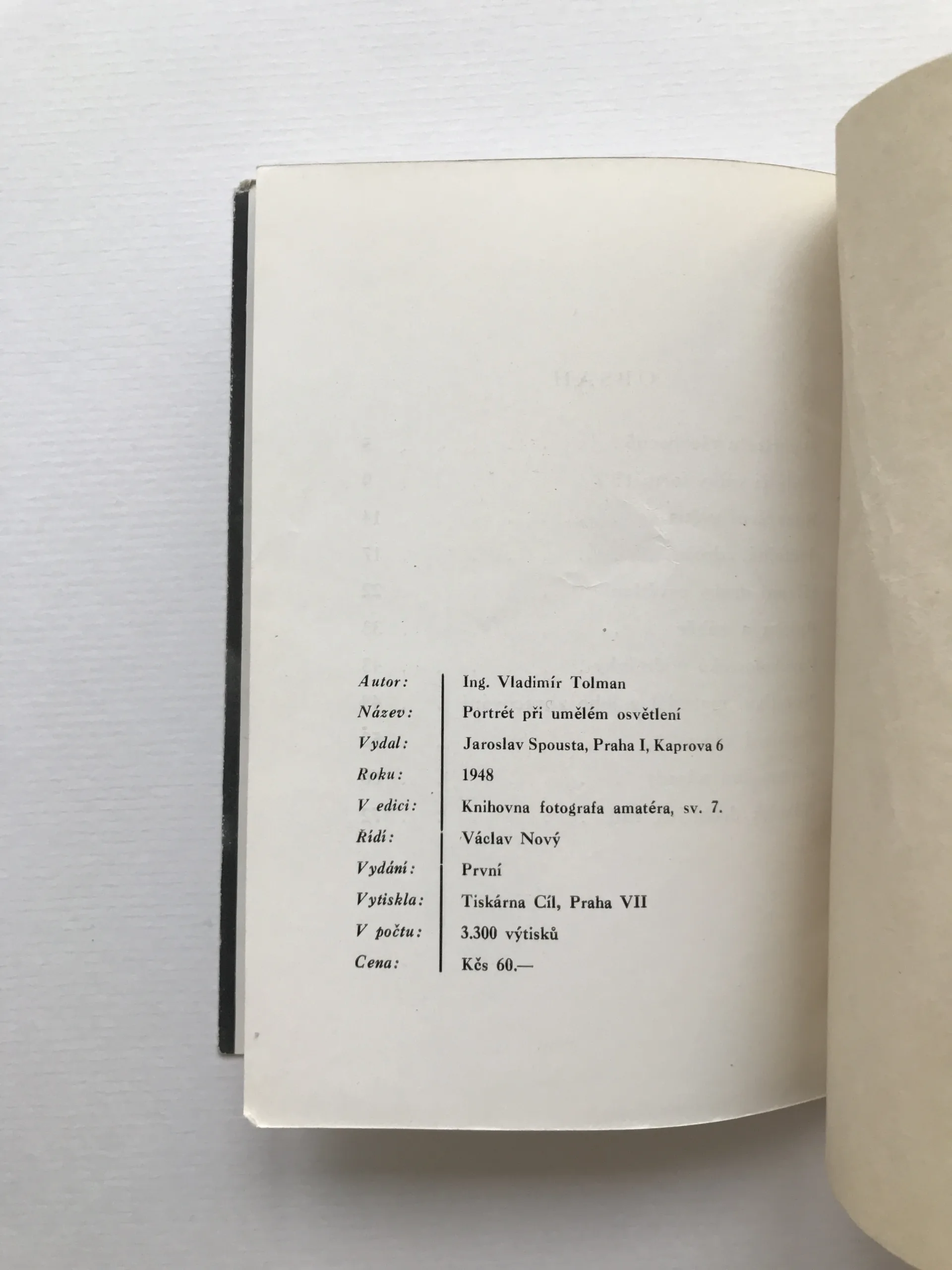 Portrét při umělém osvětlení, Vladimír Tolman