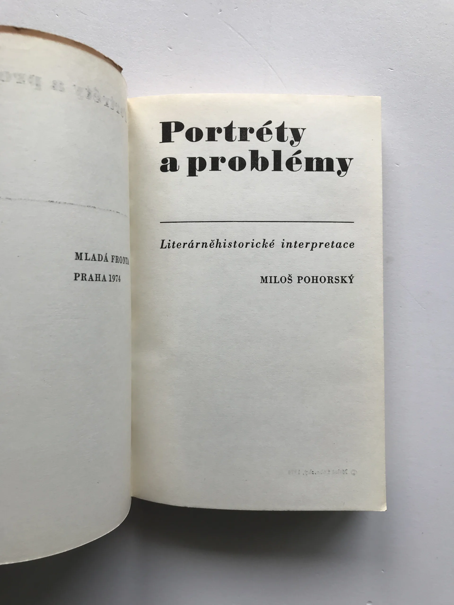 Portréty a problémy (Literárněhistorické interpretace), Miloš Pohorský