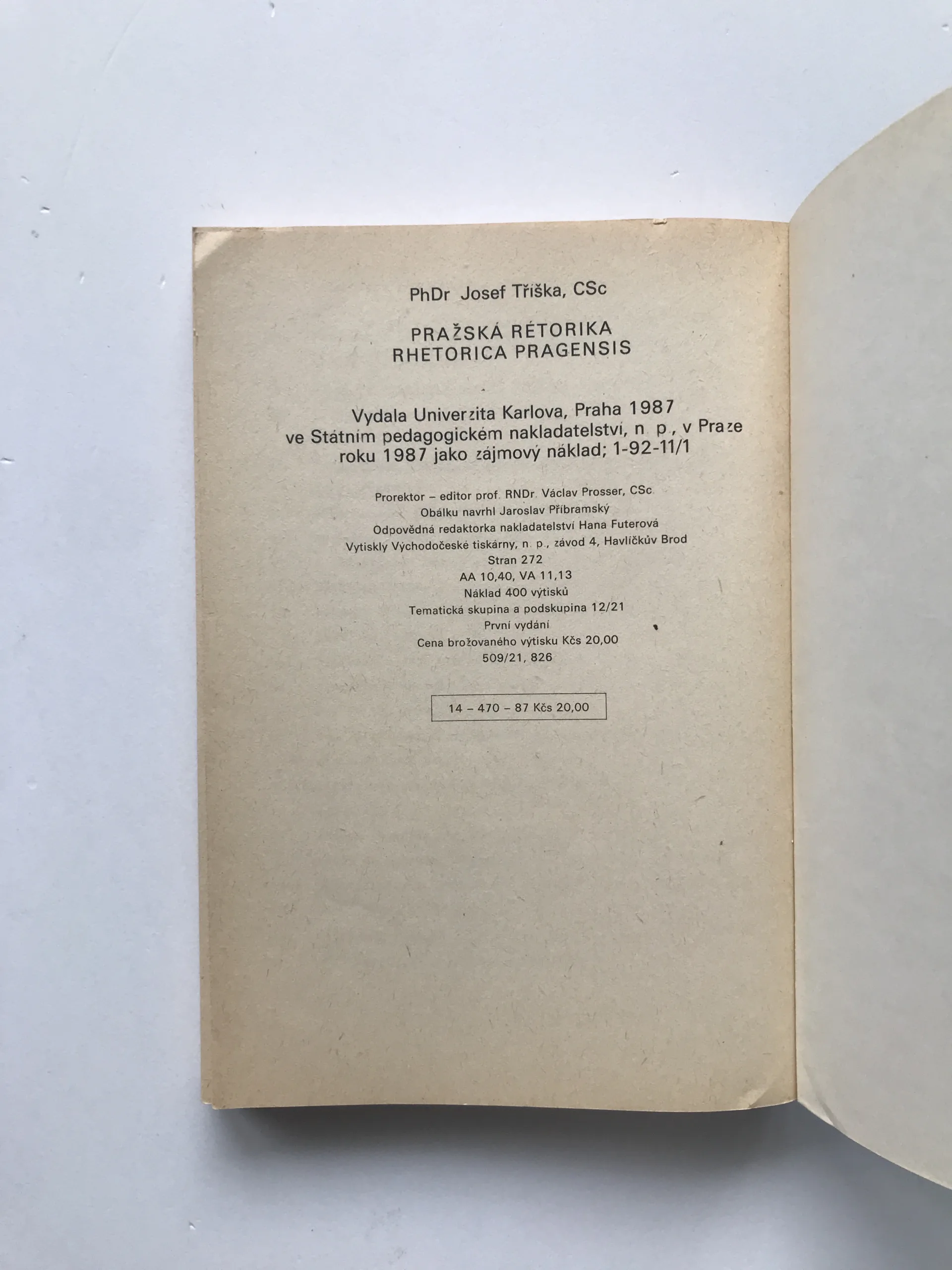 Pražská rétorika / Rhetorica Pragensis, Josef Tříška