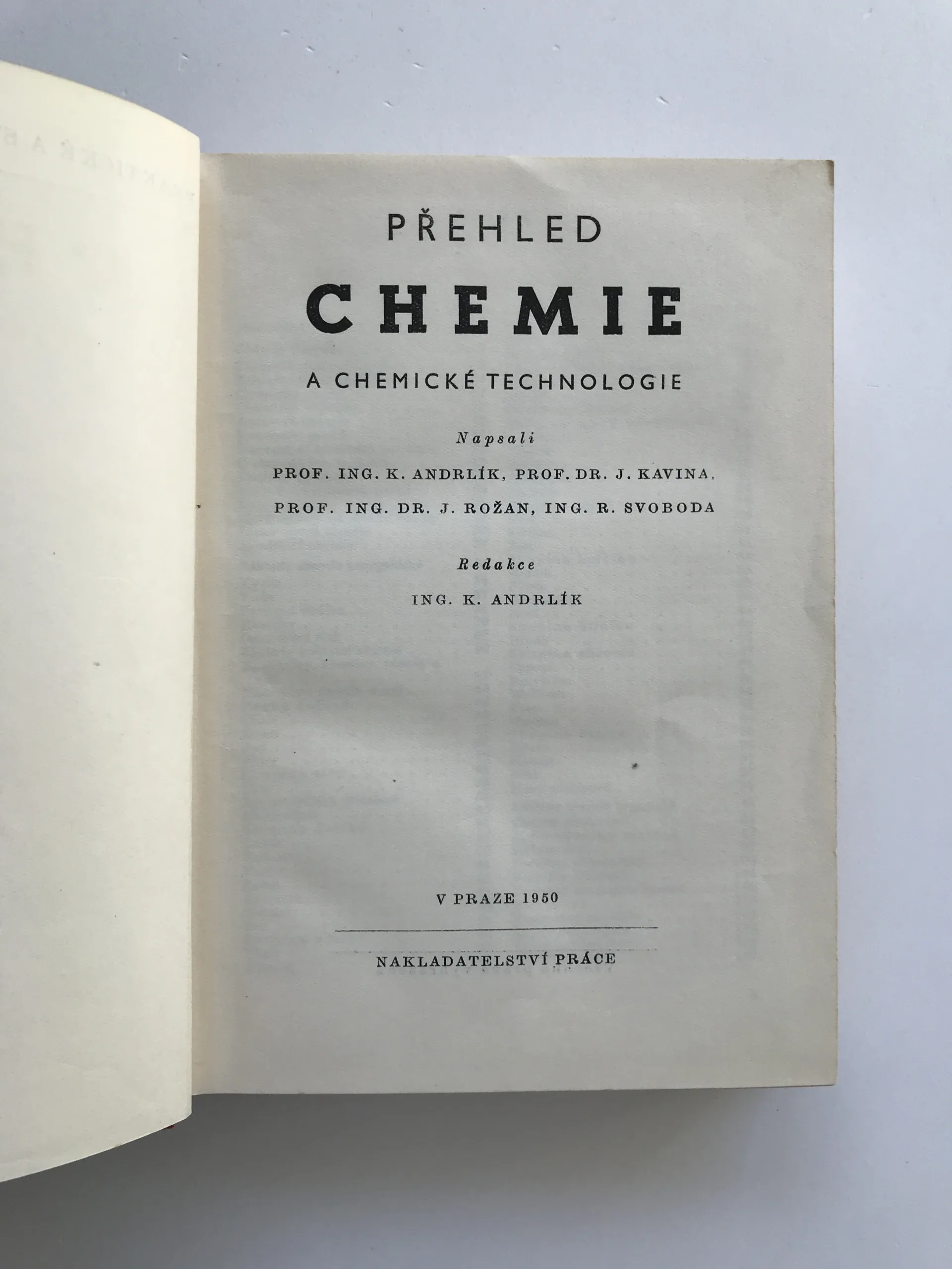 Přehled chemie a chemické technologie, Karel Andrlík, kolektiv autorů