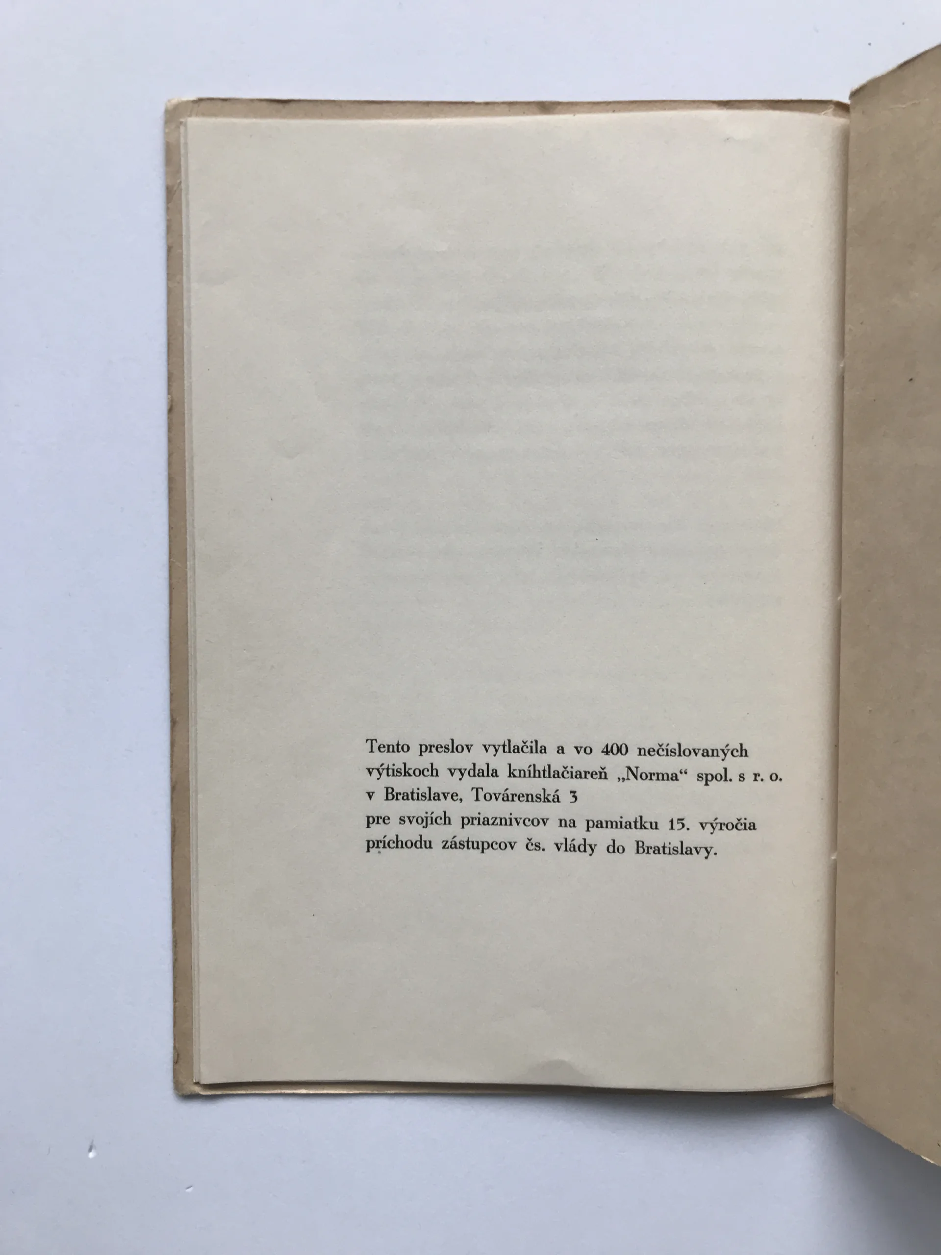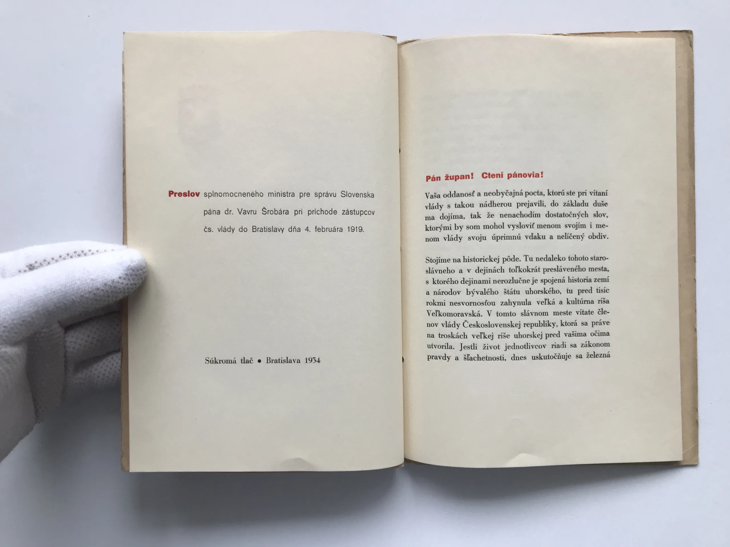 Preslov splnomocneného ministra pre správu Slovenska pána dr. Vavru Šrobára