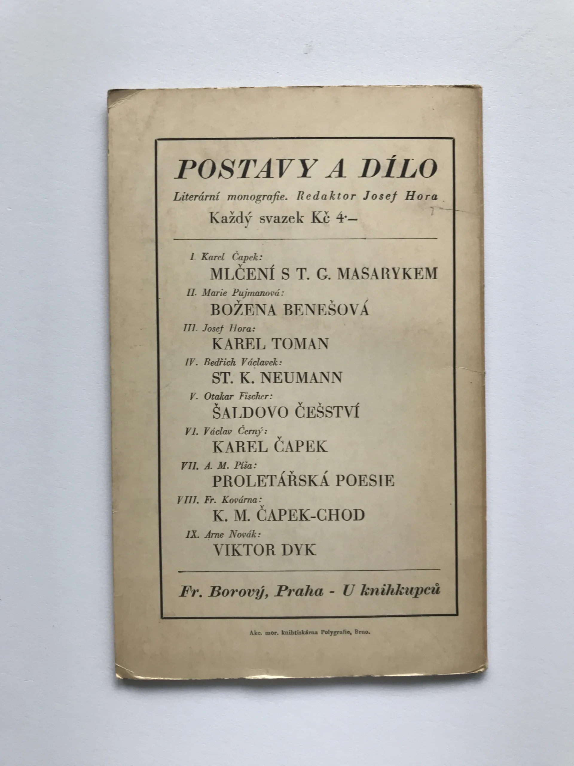 Nabízené knihy a další tiskoviny jsou antikvárního charakteru a nesou stopy předchozího používání. Aktuální stav je patrný z přiložených fotografií.