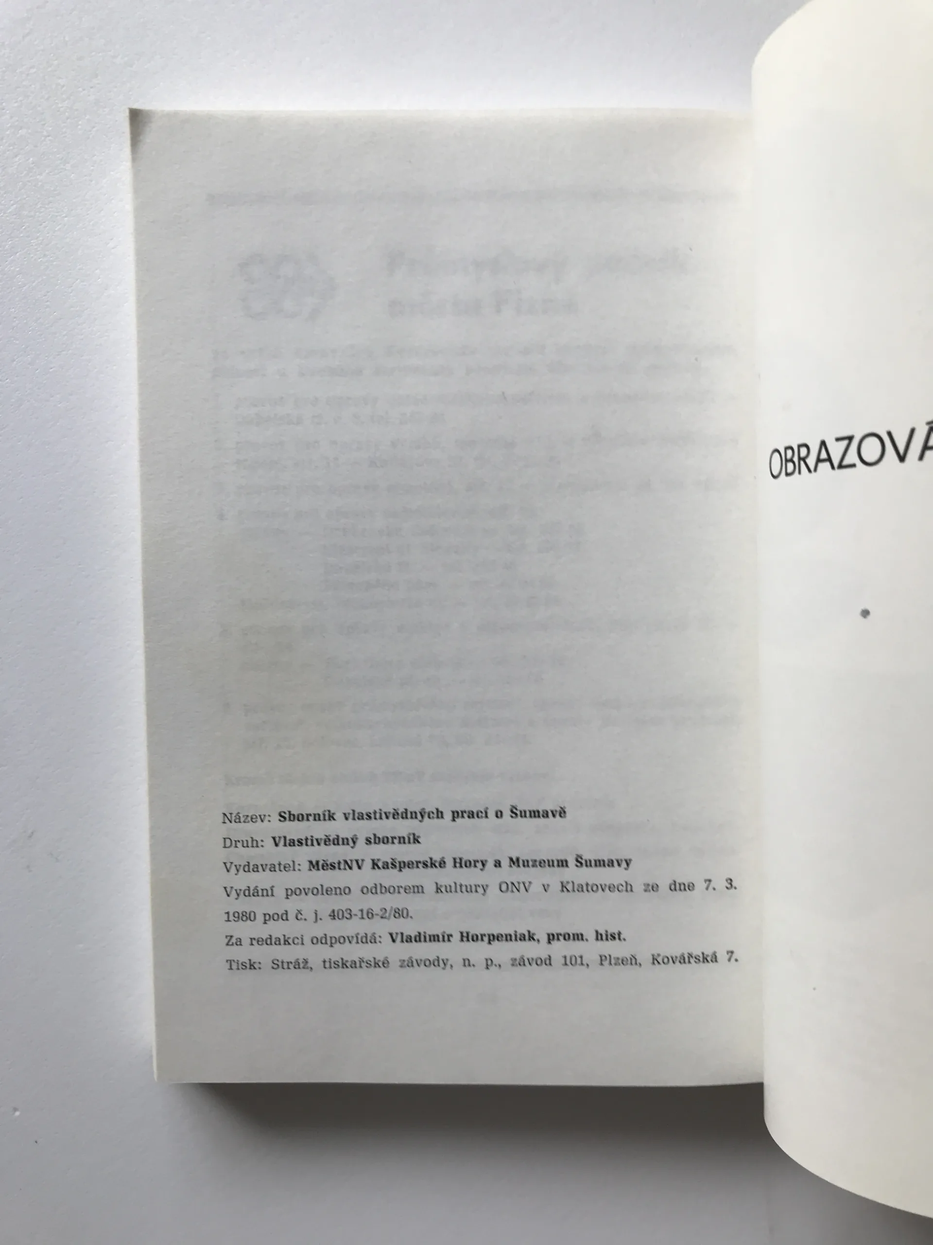Sborník vlastivědných prací o Šumavě (k 650. výročí města Kašperské Hory)