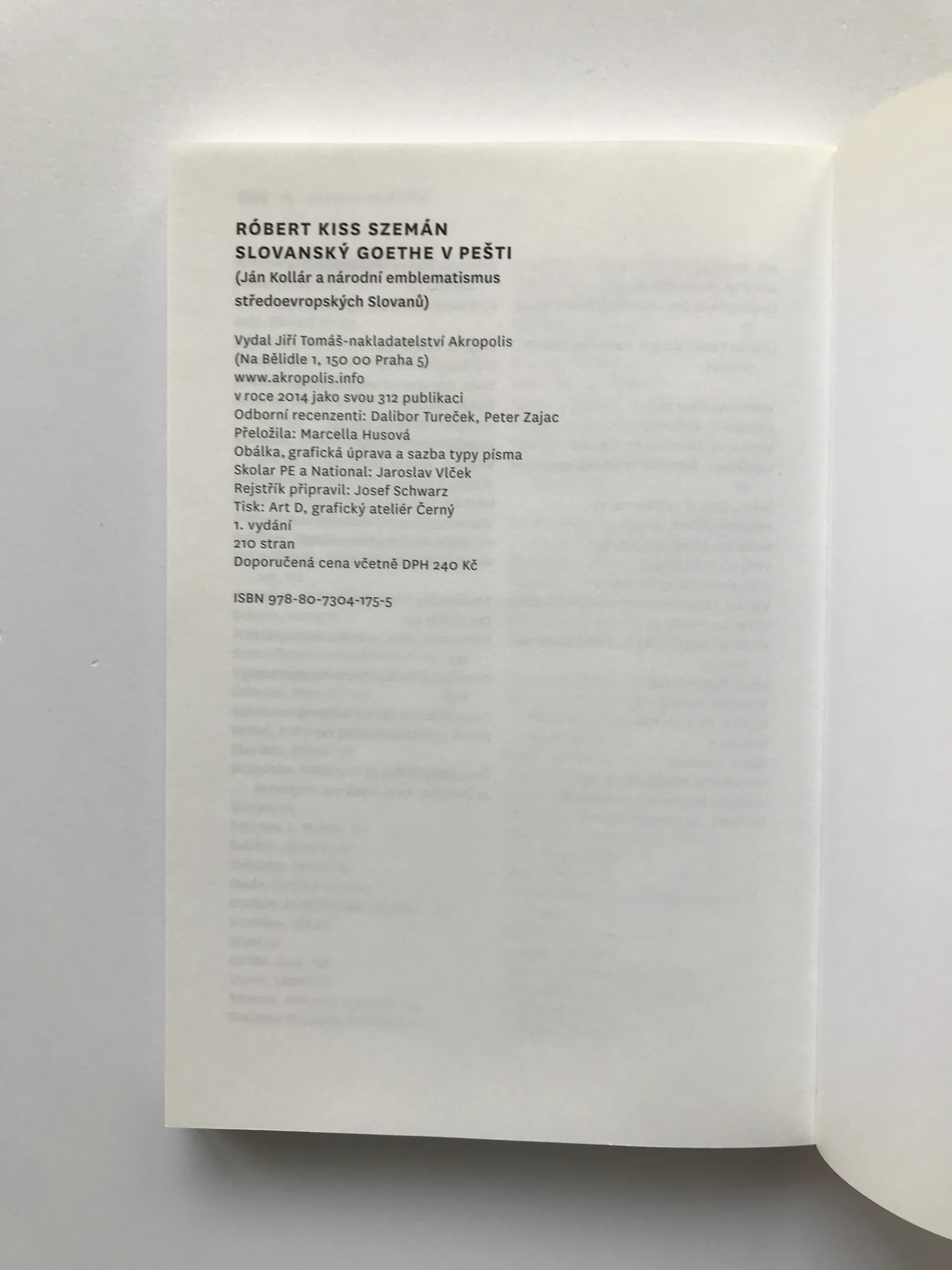 Slovanský Goethe v Pešti (Ján Kollár a národní emblematismus středoevropských Slovanů), Róbert Kiss Szemán