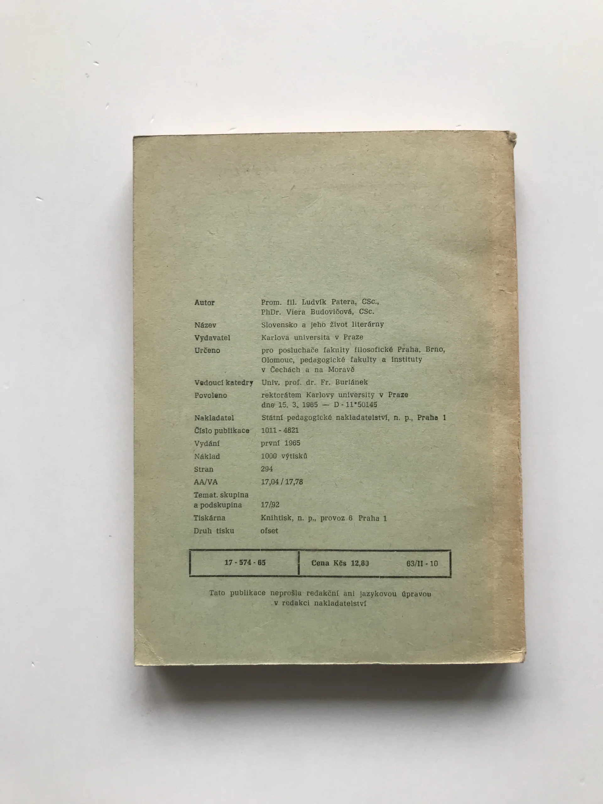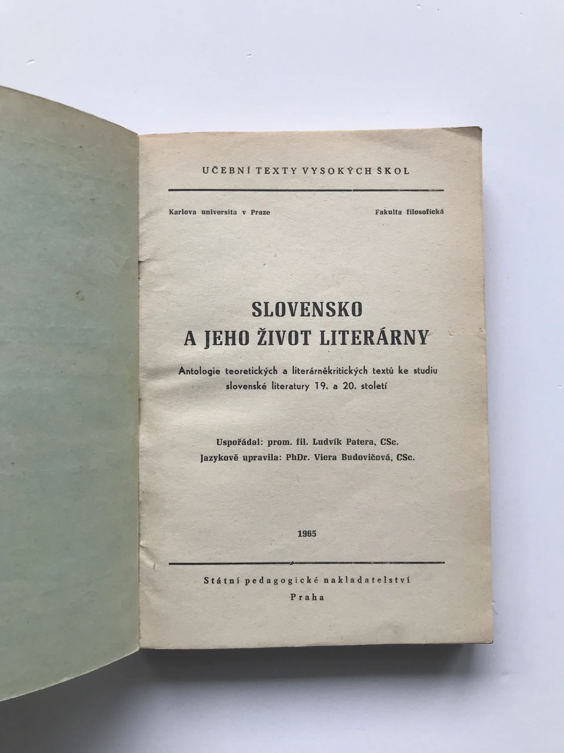 Slovensko a jeho život literárny, Ludvík Patera, Viera Budovičová