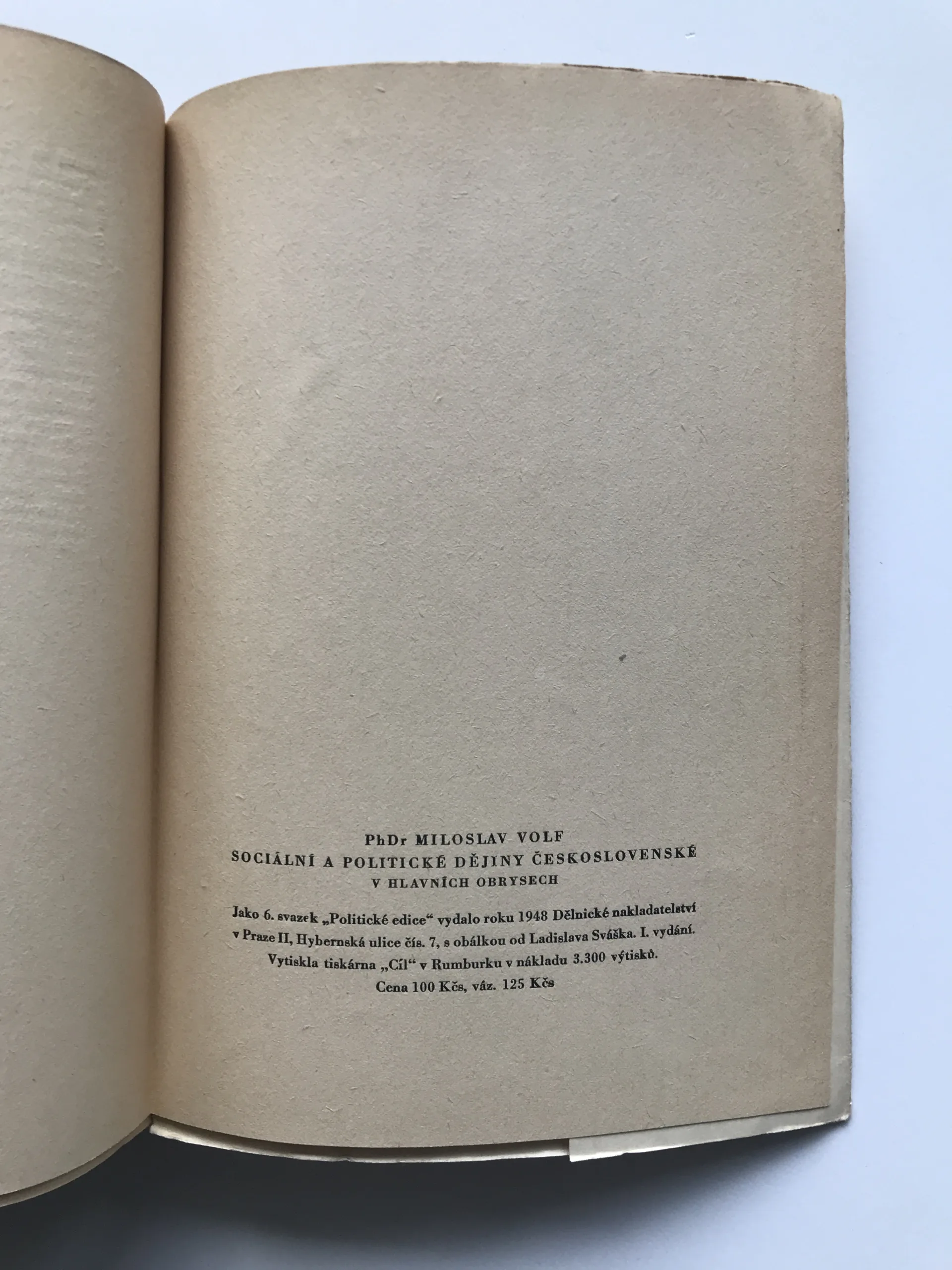 Sociální a politické dějiny československé v hlavních obrysech, Miloslav Volf