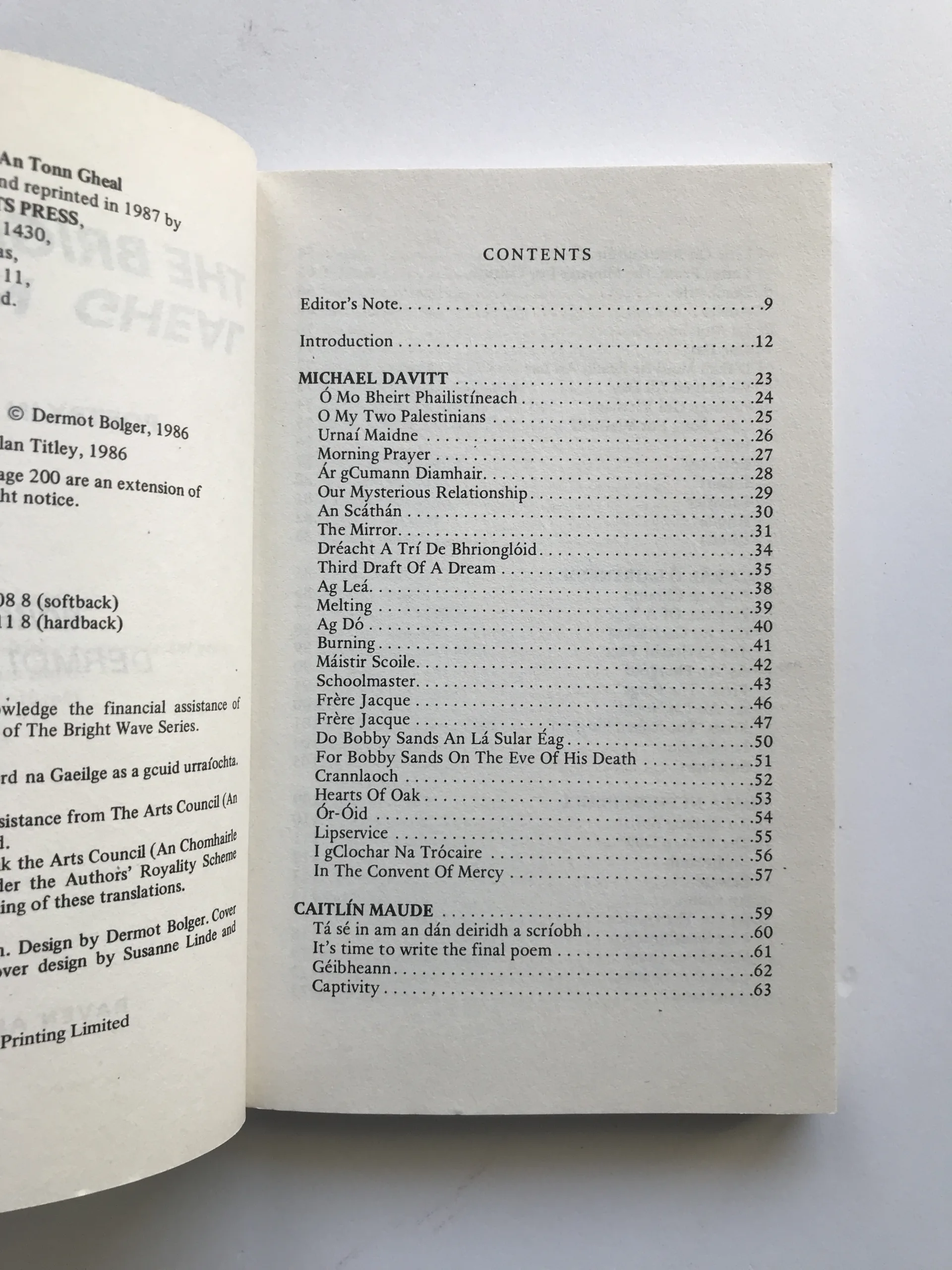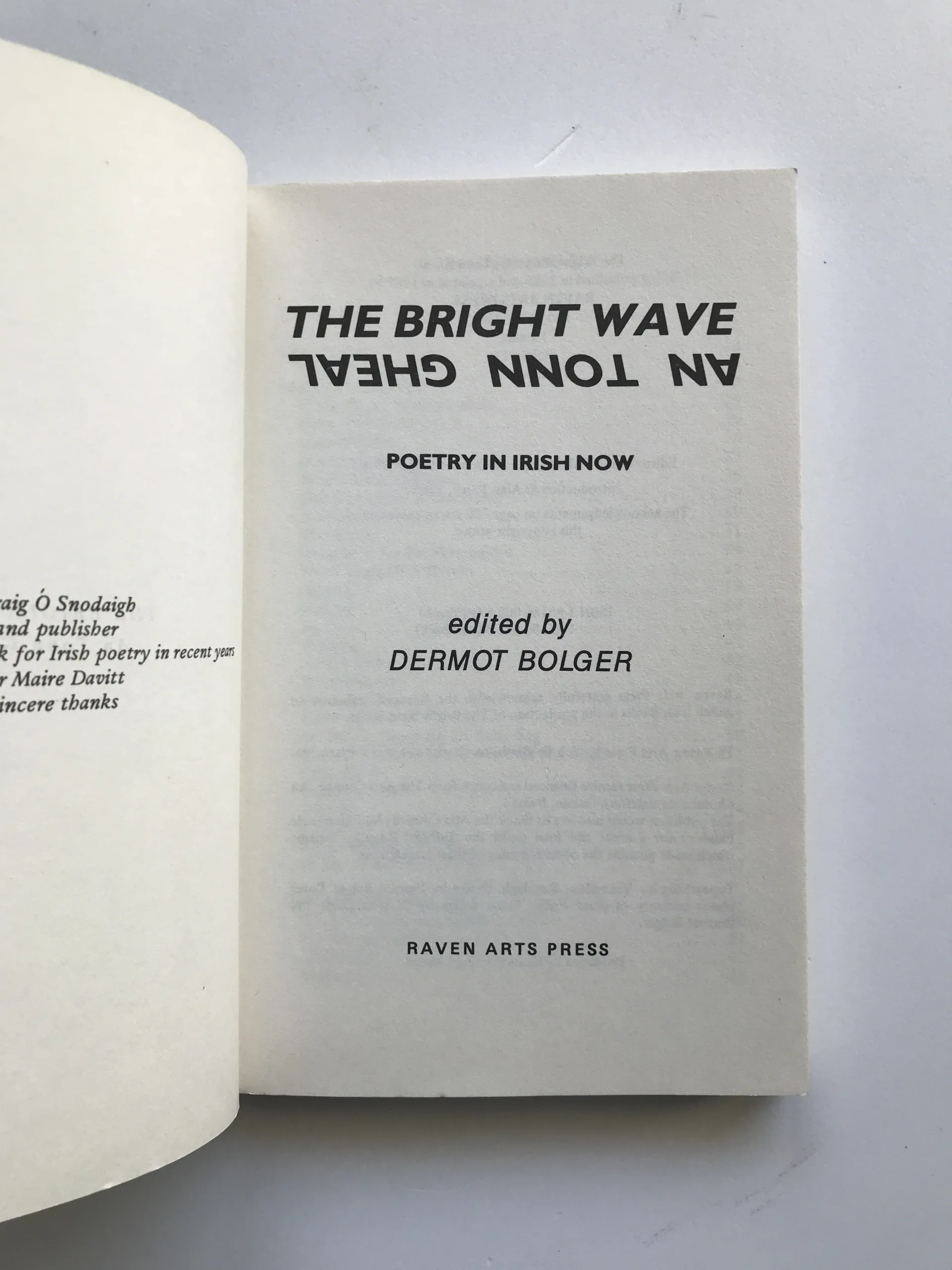 The Bright Wave / An Tonn Ghael (Poetry in Irish Now), Dermot Bolger, Michael Davitt, Caitlin Maude, Nuala Ni Dhomhnaill, Michael O hAirtneide, Liam O Muirthile, Cathal O Searcaigh