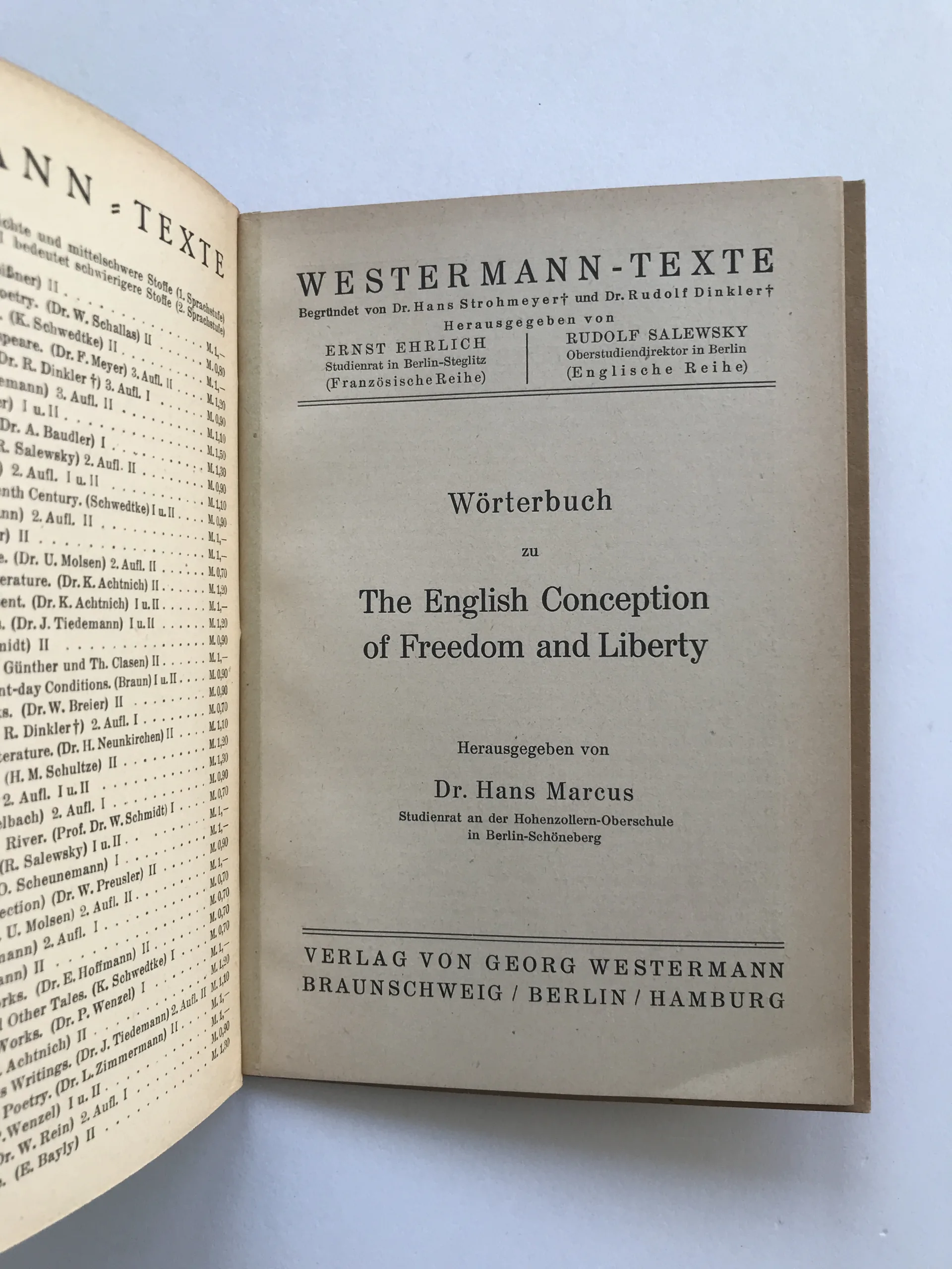 The English Conception of Freedom and Liberty, Hans Marcus