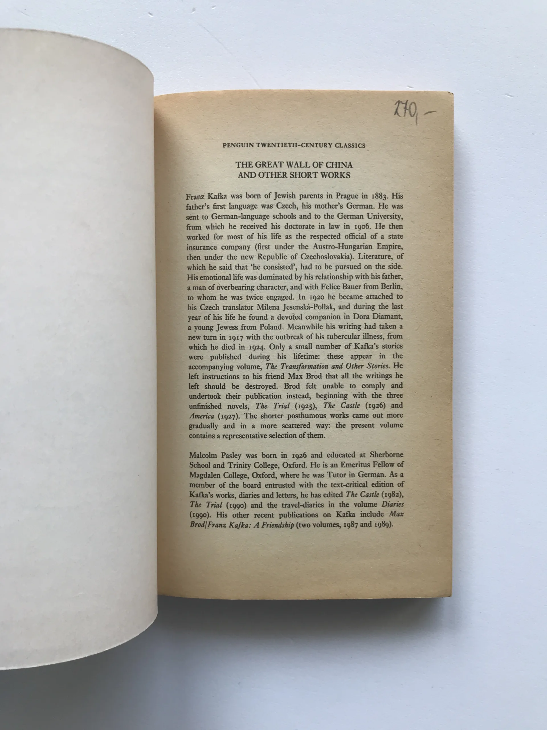 The Great Wall of China and Other Short Works, Franz Kafka