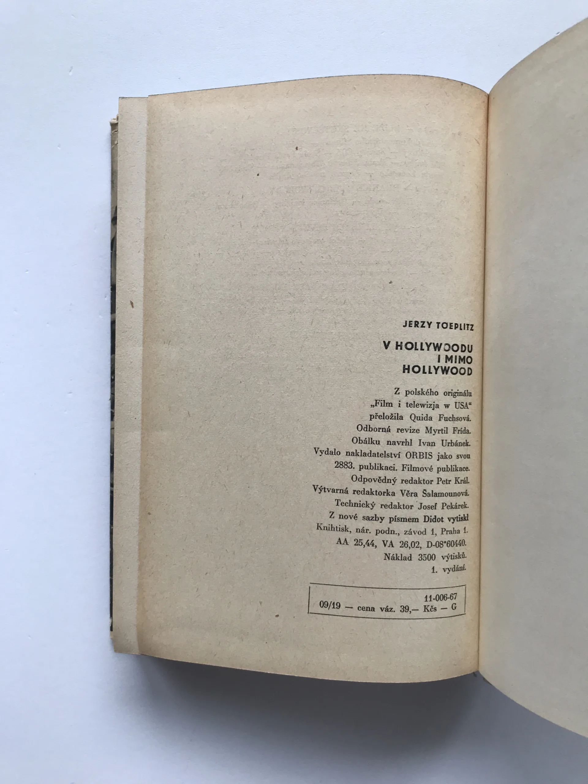 V Hollywoodu i mimo Hollywood (Dnešek a perspektivy filmu a televize v USA), Jerzy Toeplitz