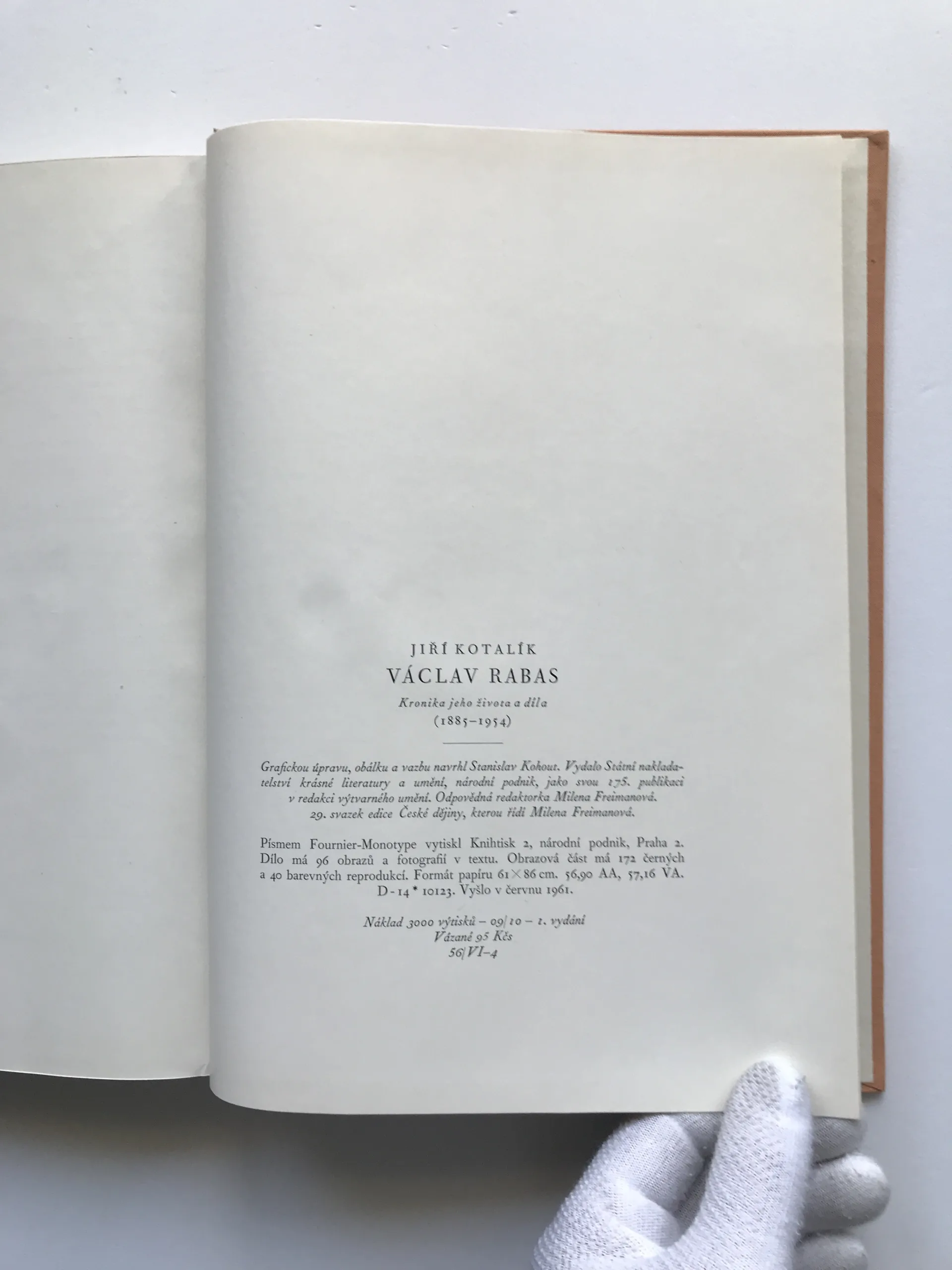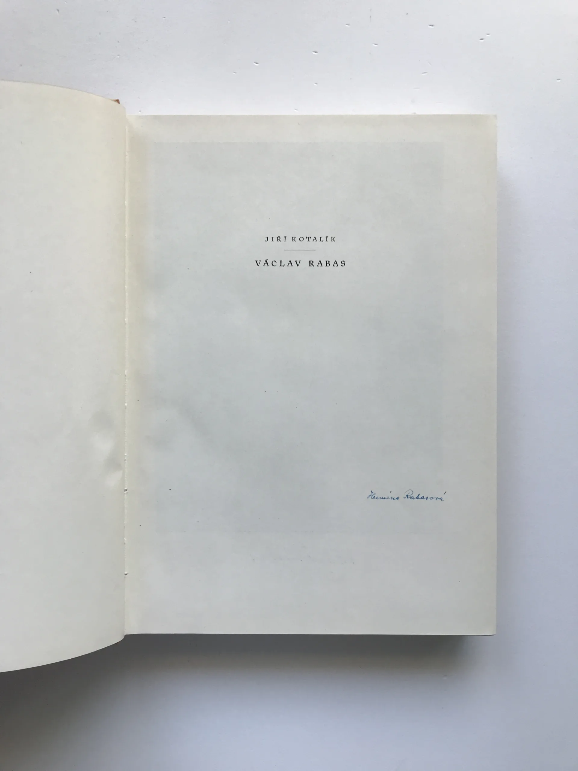 Václav Rabas – Kronika jeho života a díla (podpis Hermína Rabasová), Jiří Kotalík