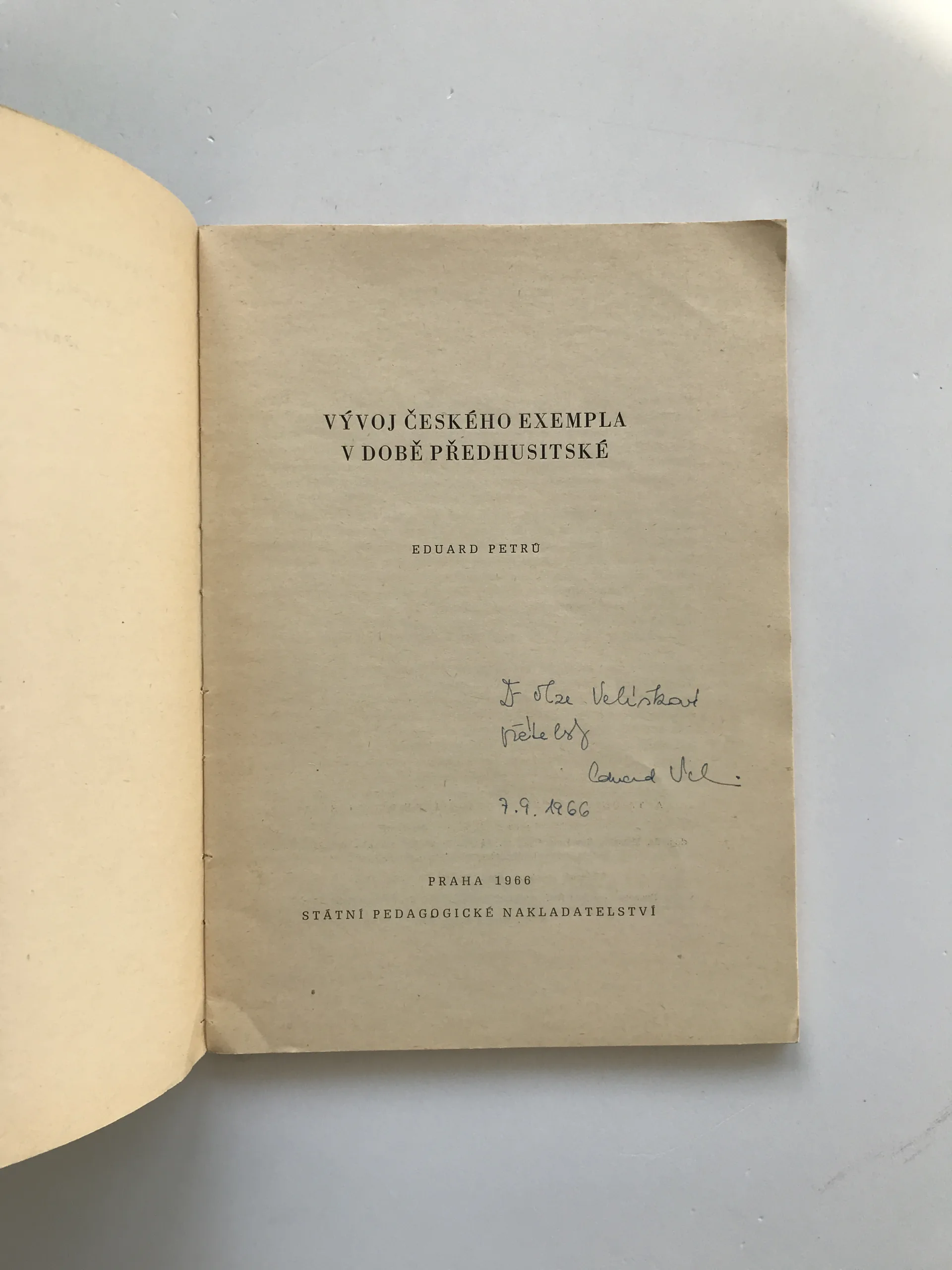 Vývoj českého exempla v době předhusitské (věnování autora), Eduard Petrů