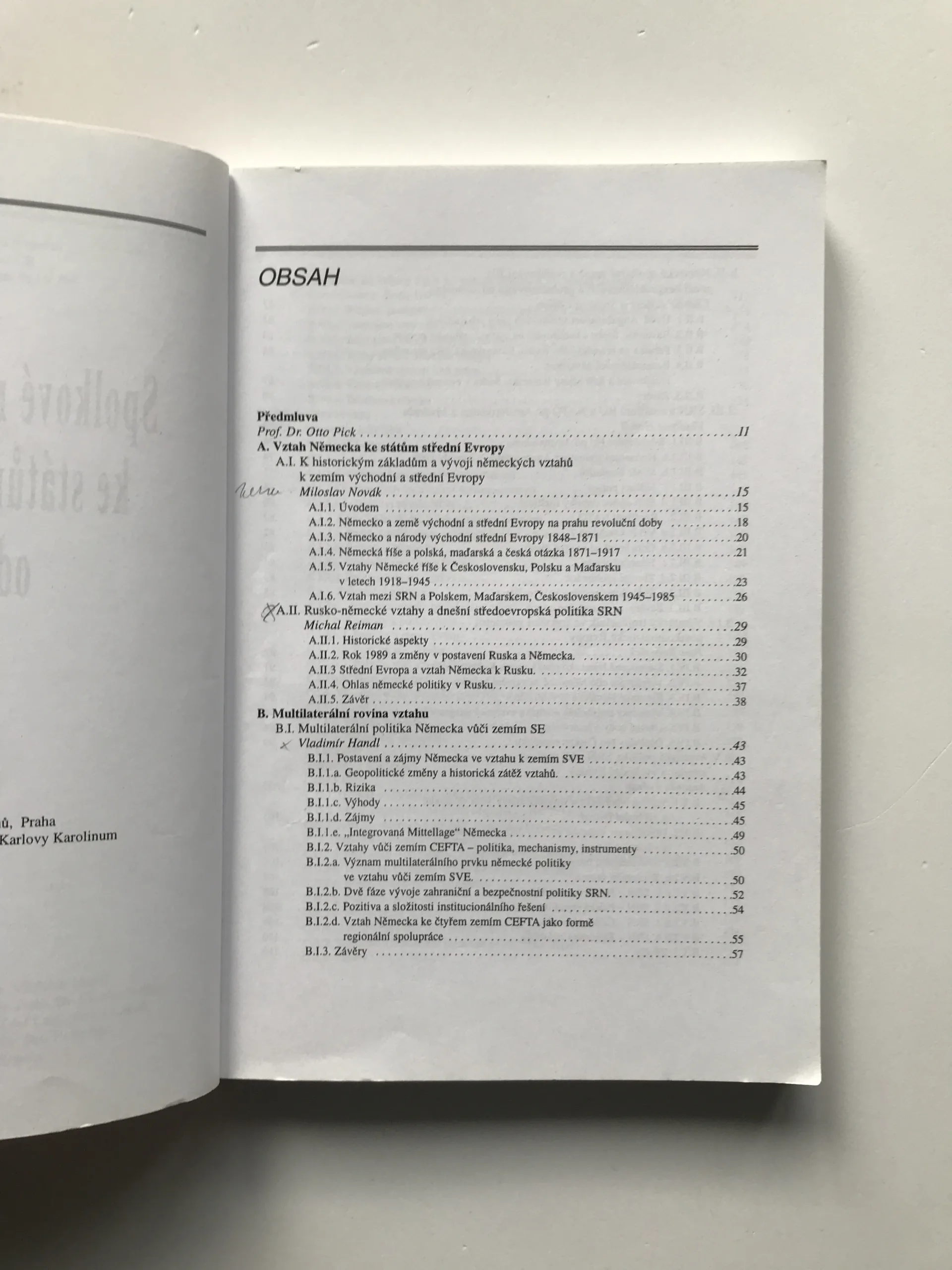 Vztahy Spolkové republiky Německo ke státům střední Evropy od roku 1990, Vladimír Handl, Jan Hon, Otto Pick