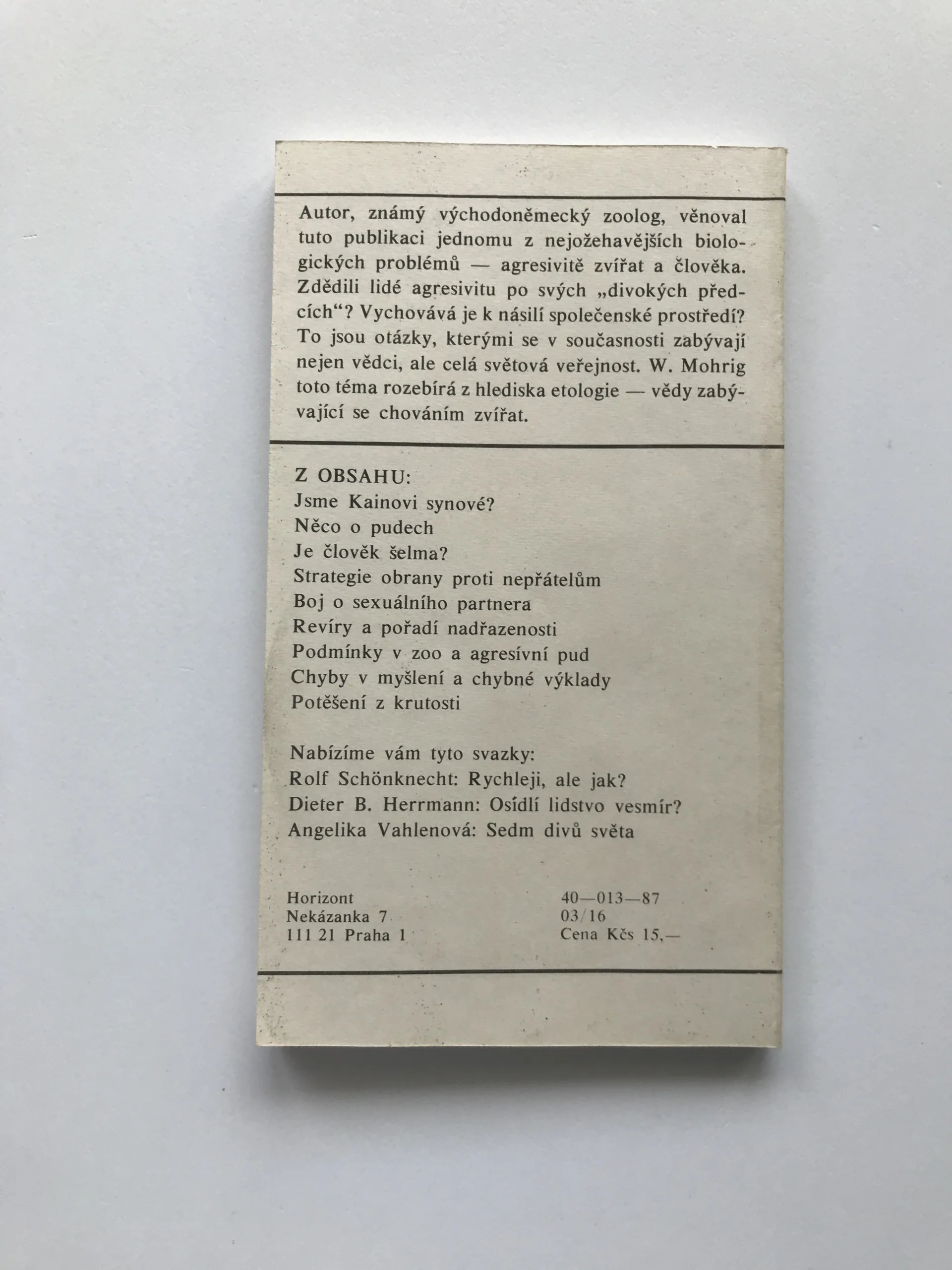 Zlý jako zvíře? (Biologické i nebiologické úvahy na téma agresivity), Werner Mohrig